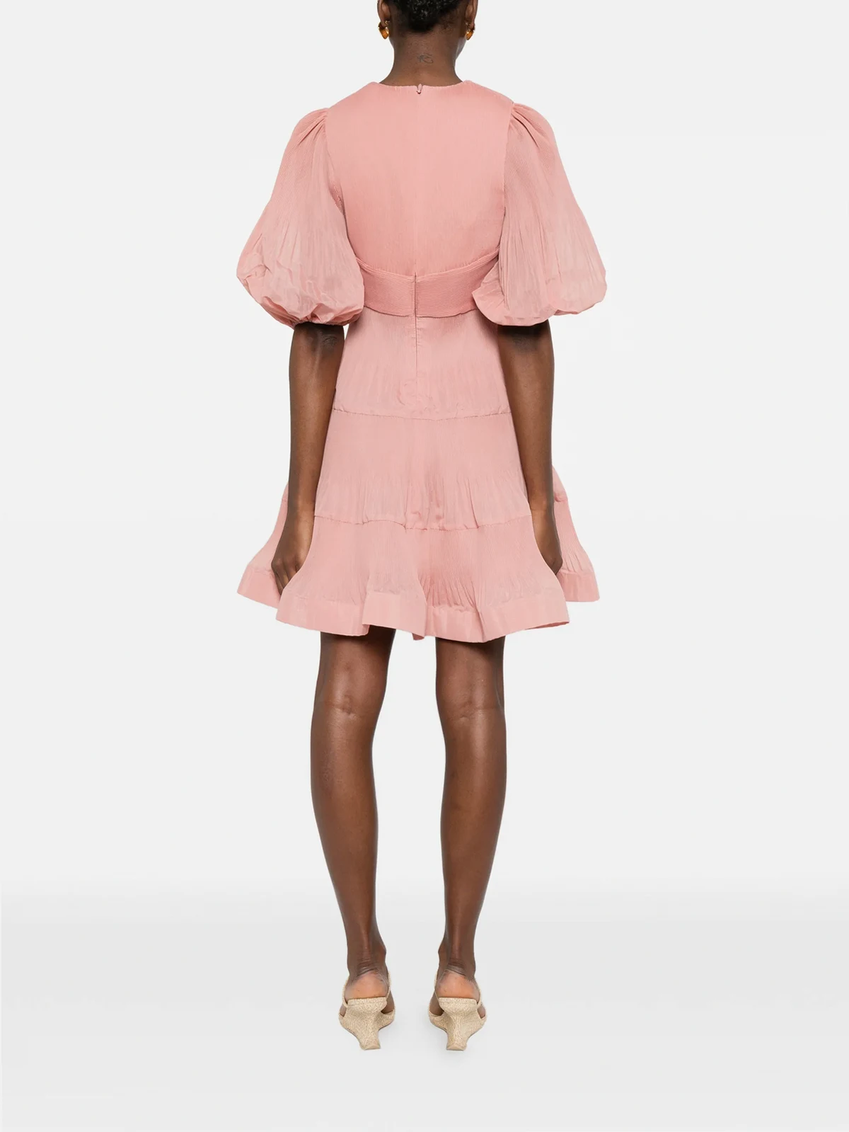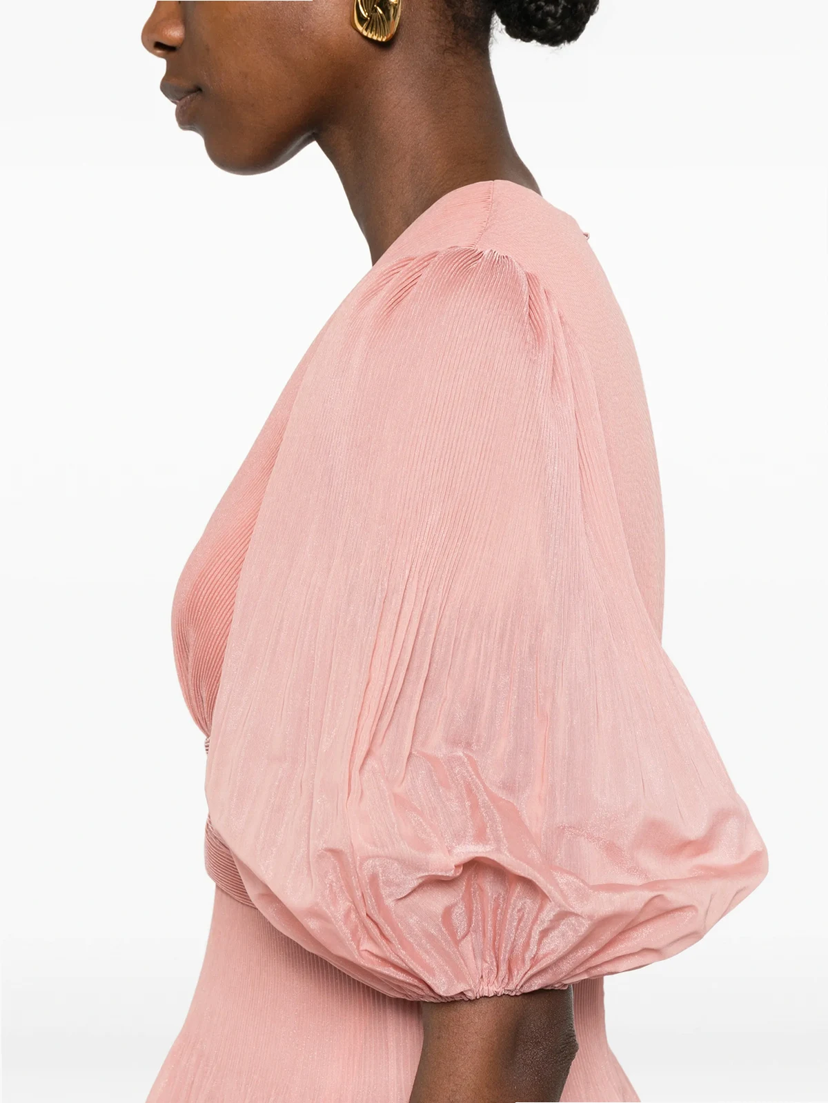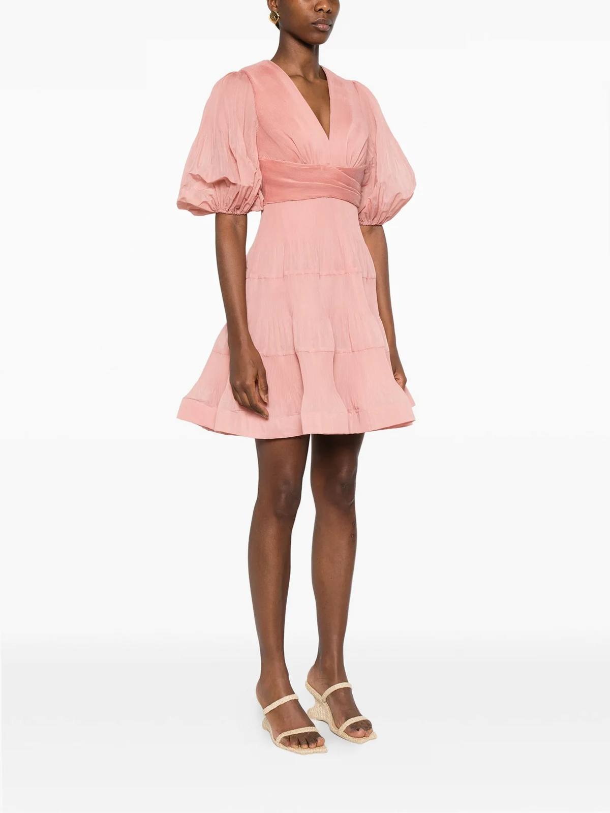 pleated V-neck mini dress