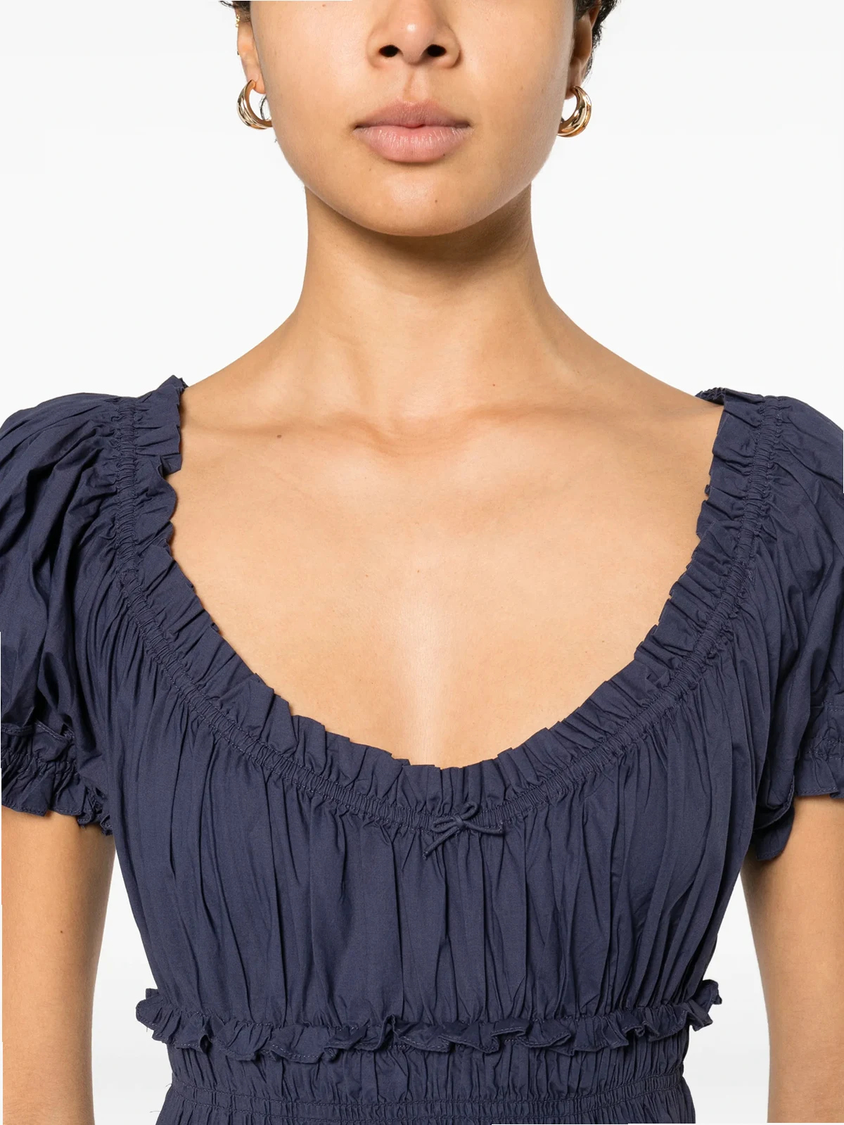 Women's Chiffon Ruched Illusion Raglan Sleeve Ruffled Gown