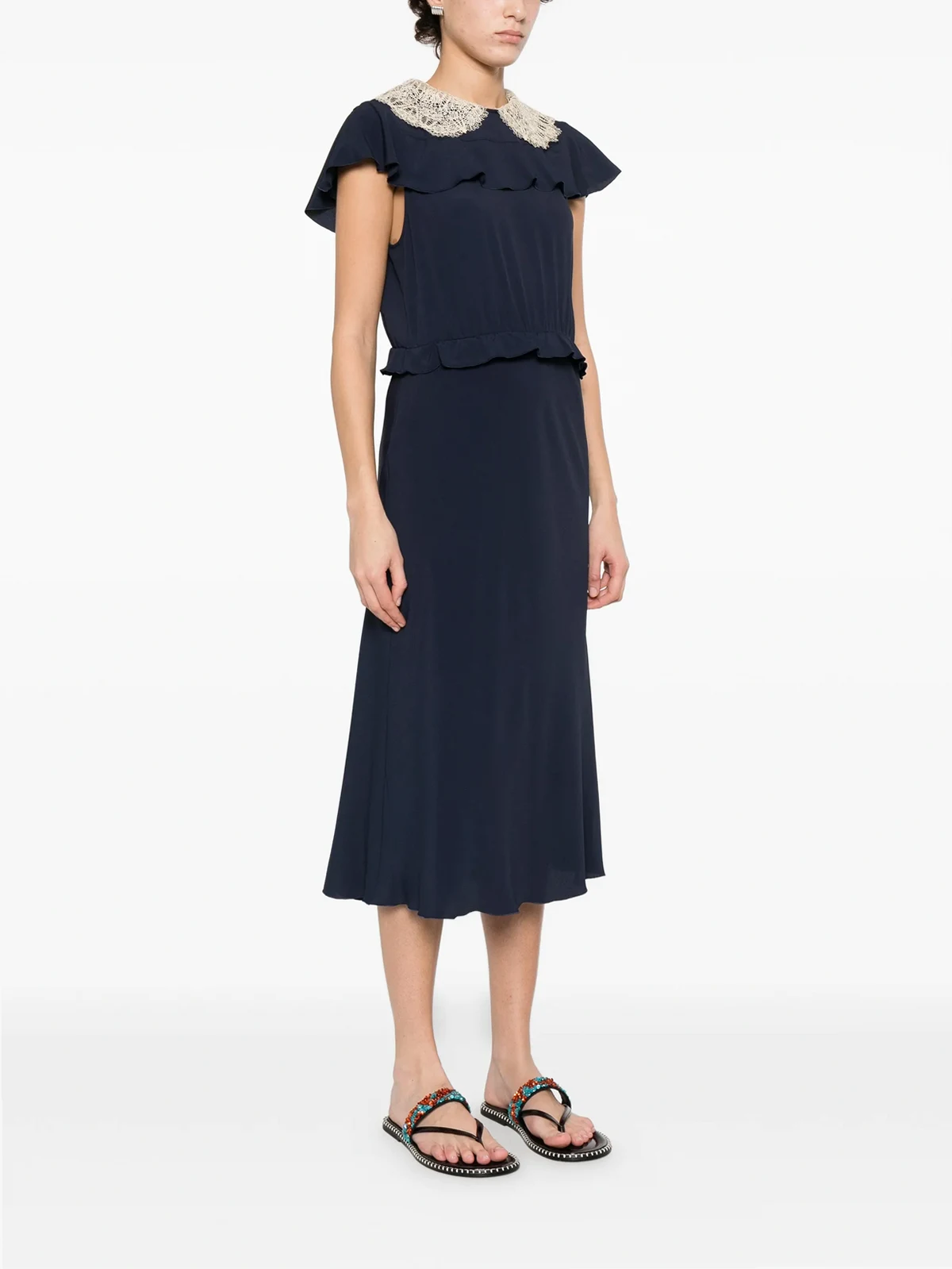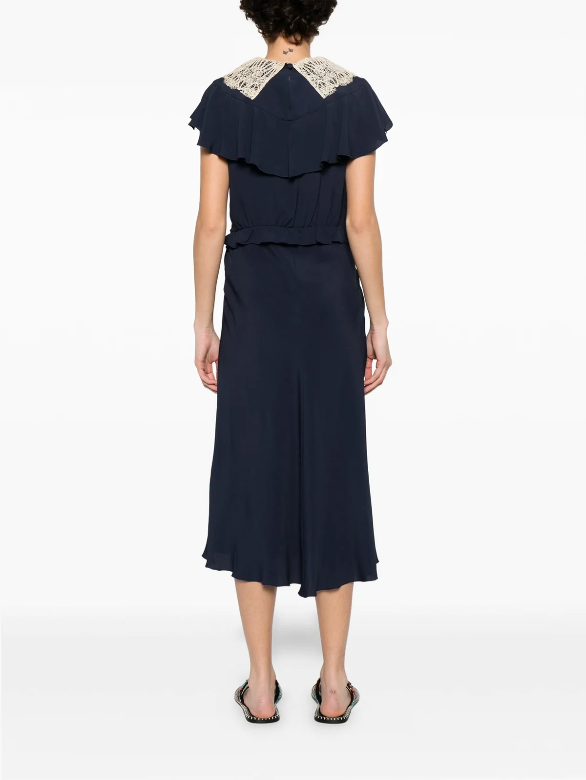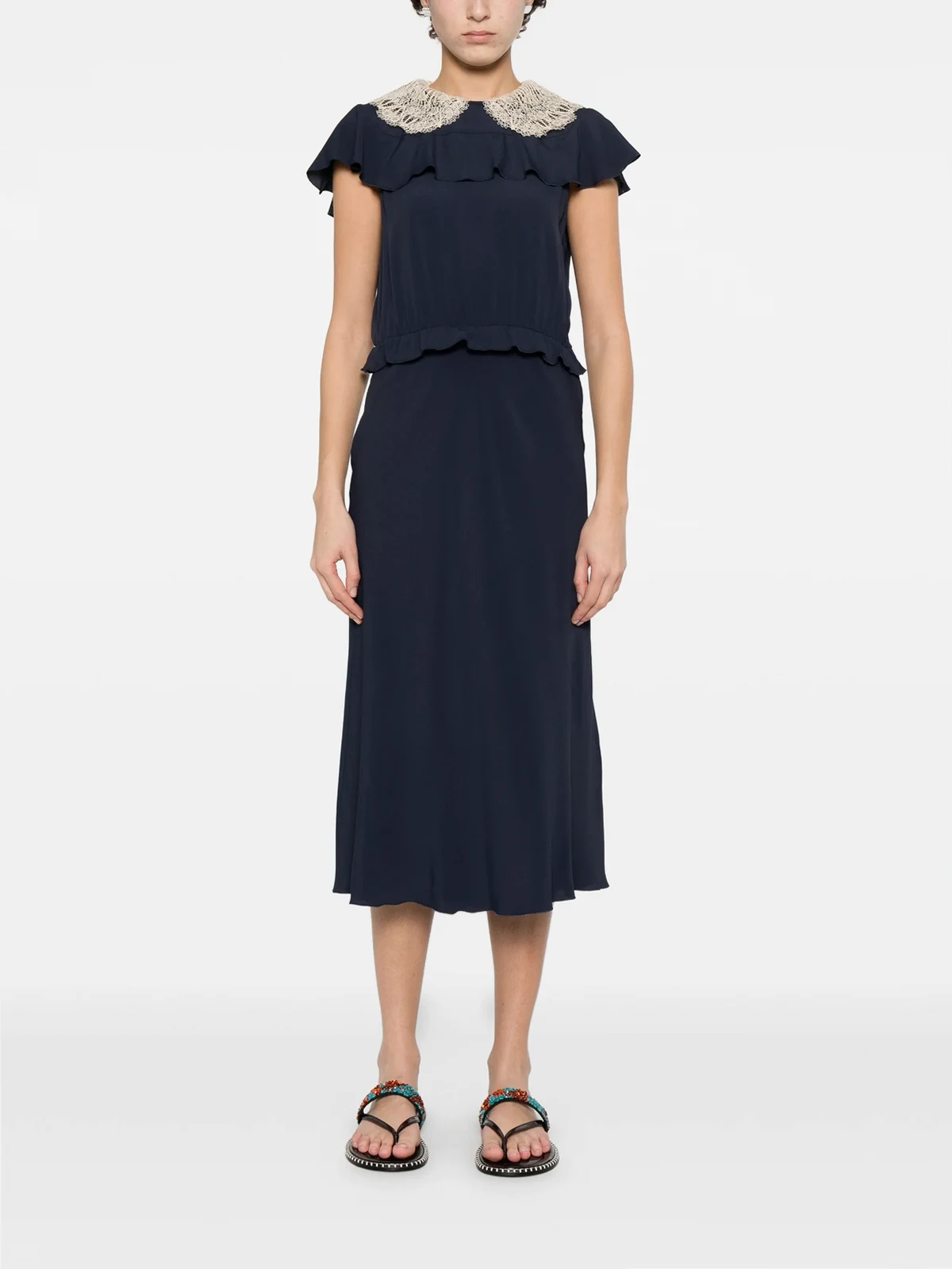 Women's Chiffon Ruched Illusion Raglan Sleeve Ruffled Gown