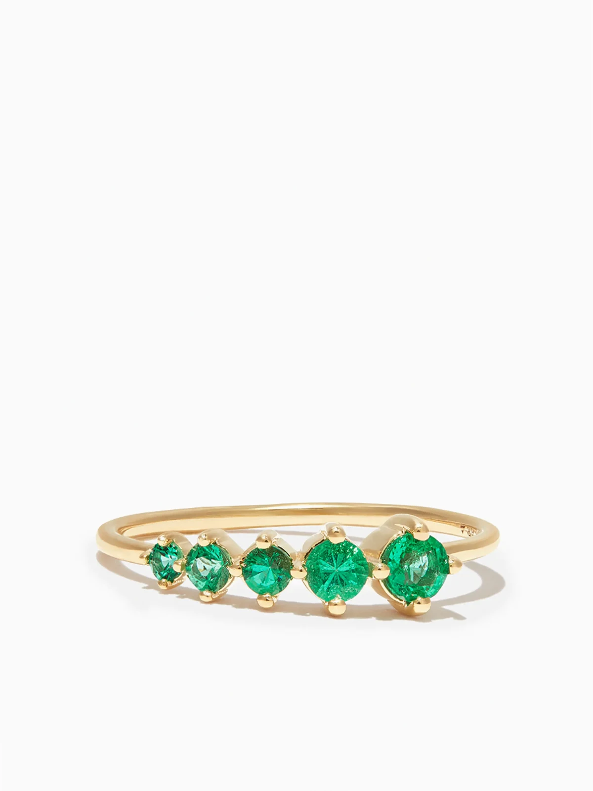 14kt yellow gold graduated emerald ring