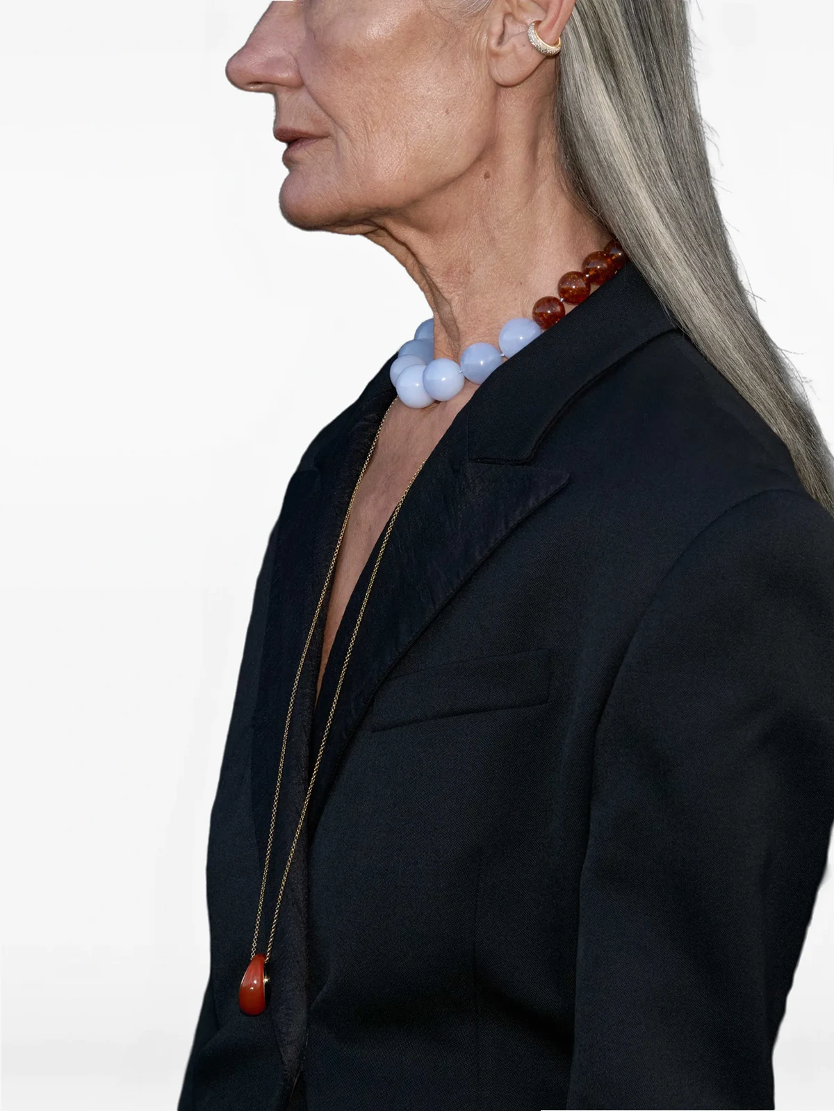 18kt Yellow Gold 100%, Amber 100%, Chalcedony 100%