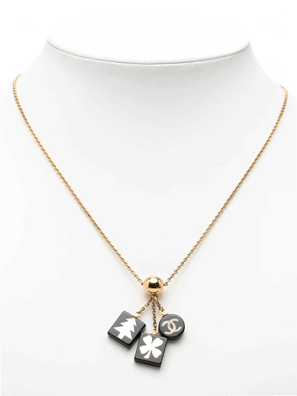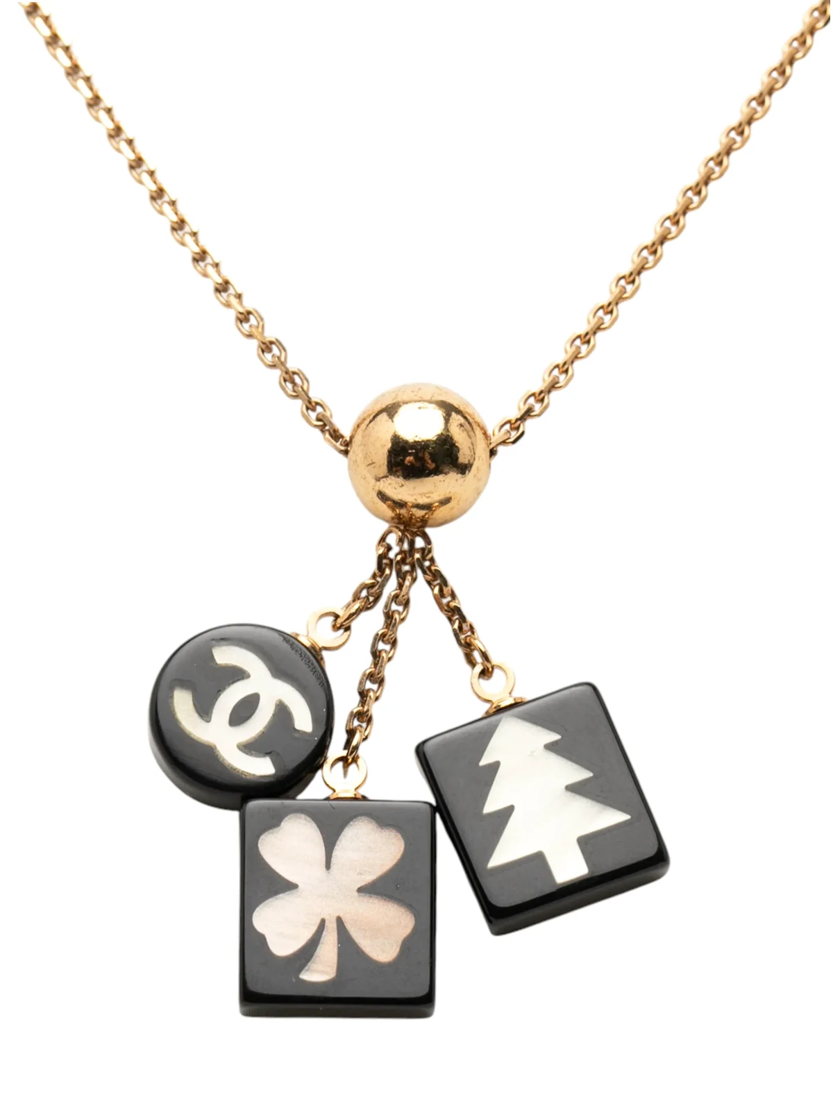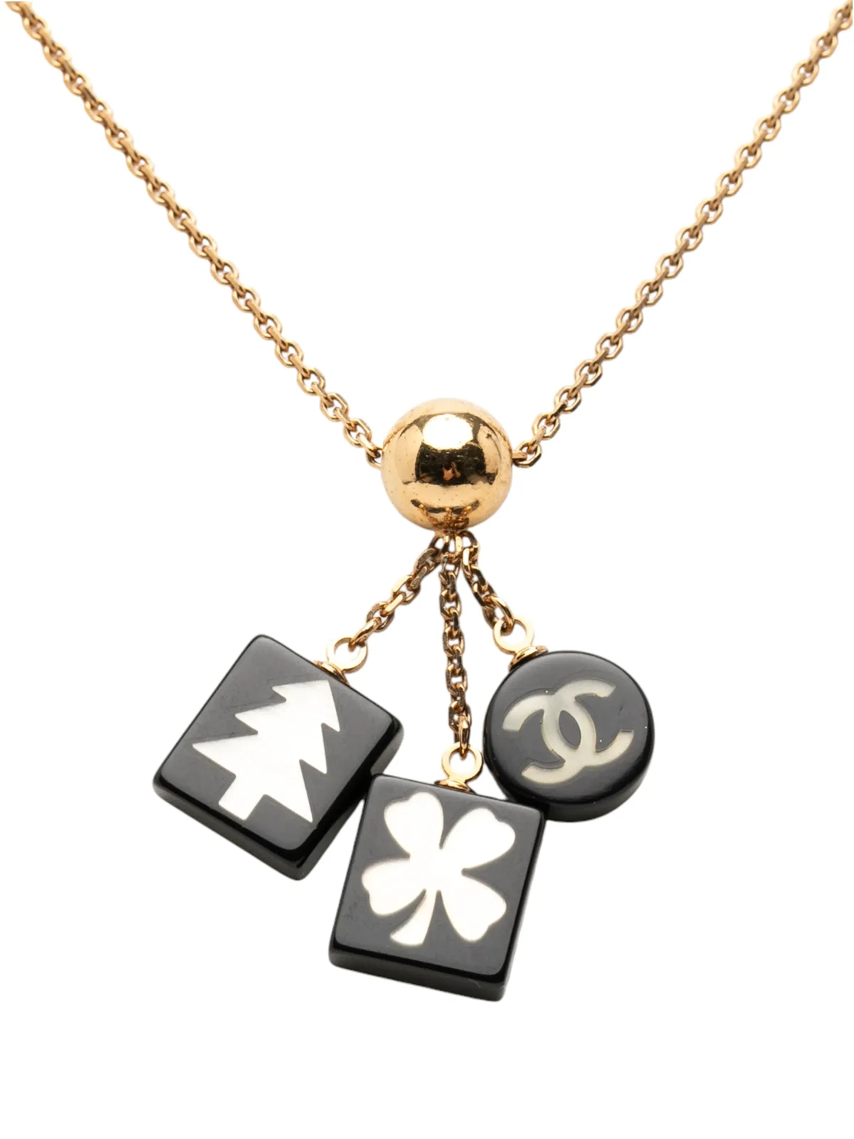 2003 Gold Plated Resin CC Logo Tree Clover Pendant Necklace costume necklace