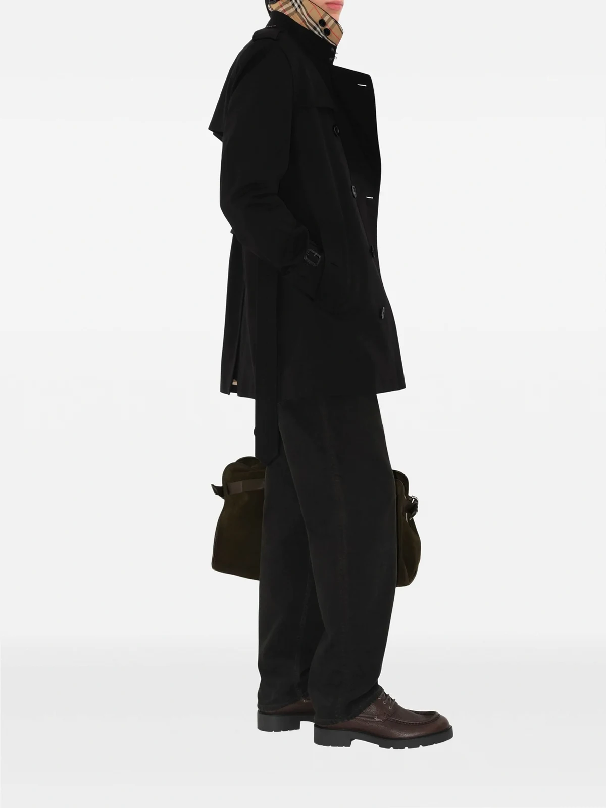 Black Water-Repellent Trench Coat