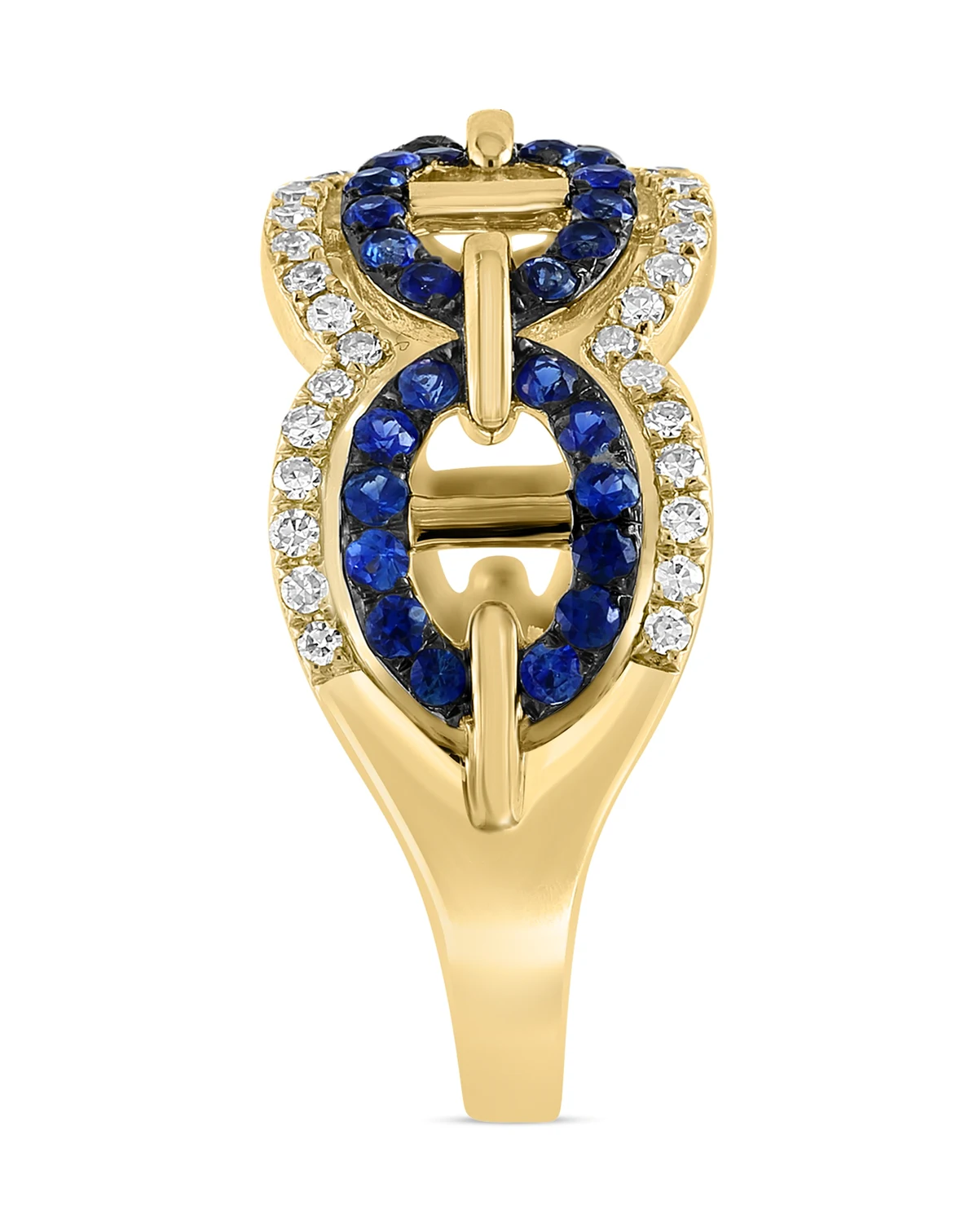 This chain link-inspired ring from EFFY® is artistically designed with sapphires and diamonds in an openwork design.