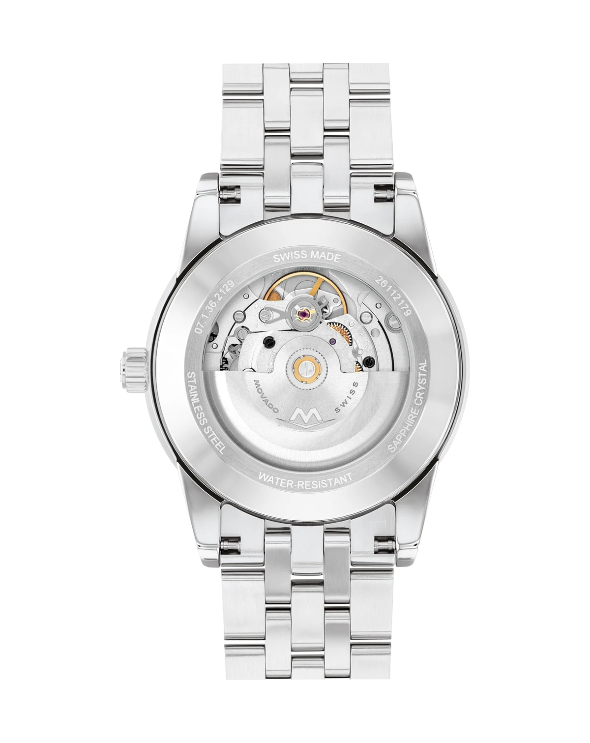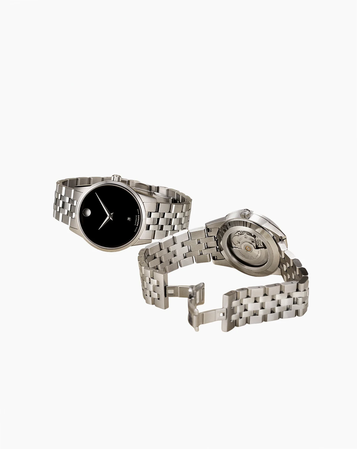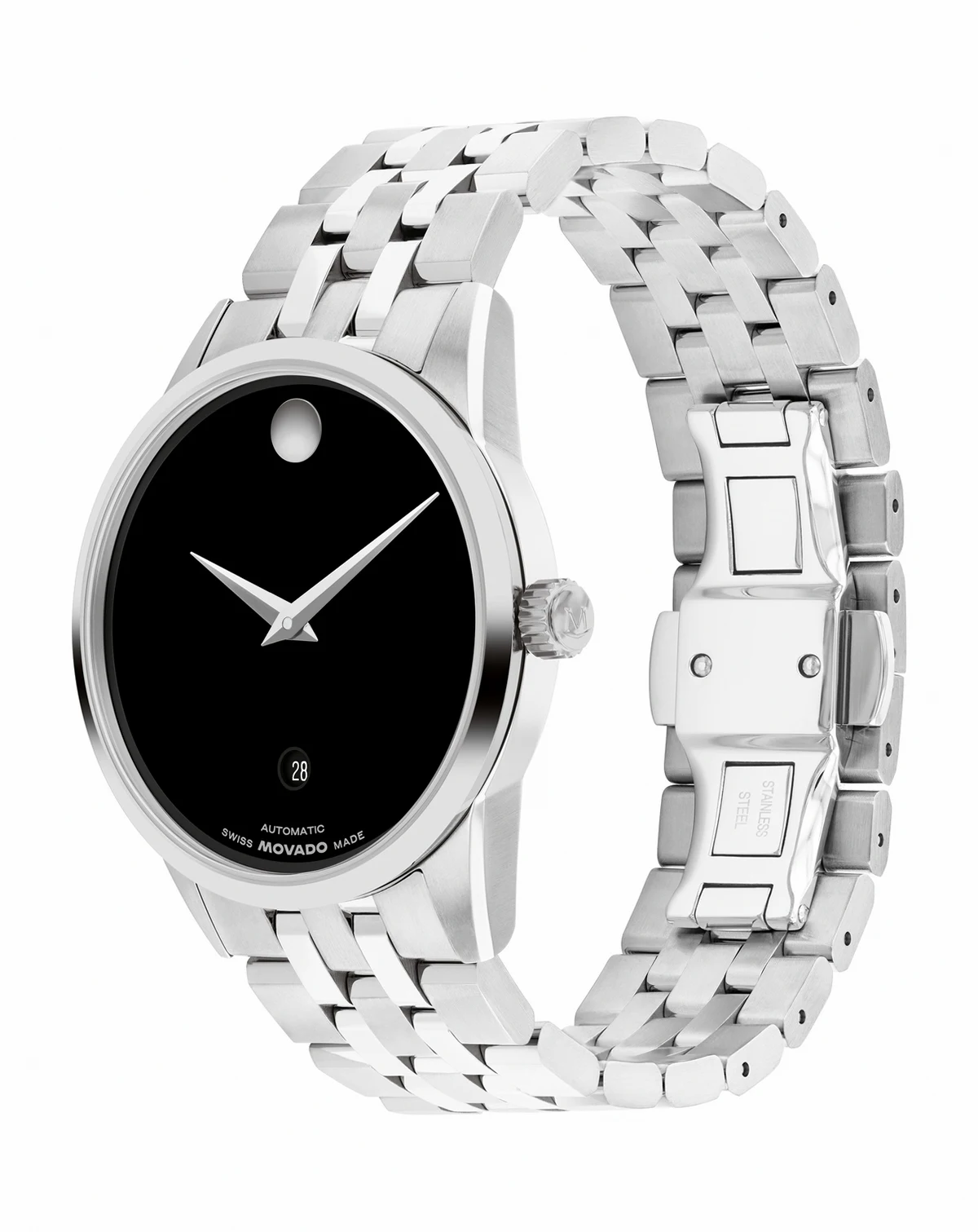 The Museum Classic is the purest interpretation of Movado's Museum Dial, an icon of modern design seen in art institutions around the world. A Swiss made self-winding movement drives this watch, powered by the motion of your wrist. This 40mm two-hand watch features a black lacquer dial, steel dauphine hands, and our signature dot at 12 o'clock.