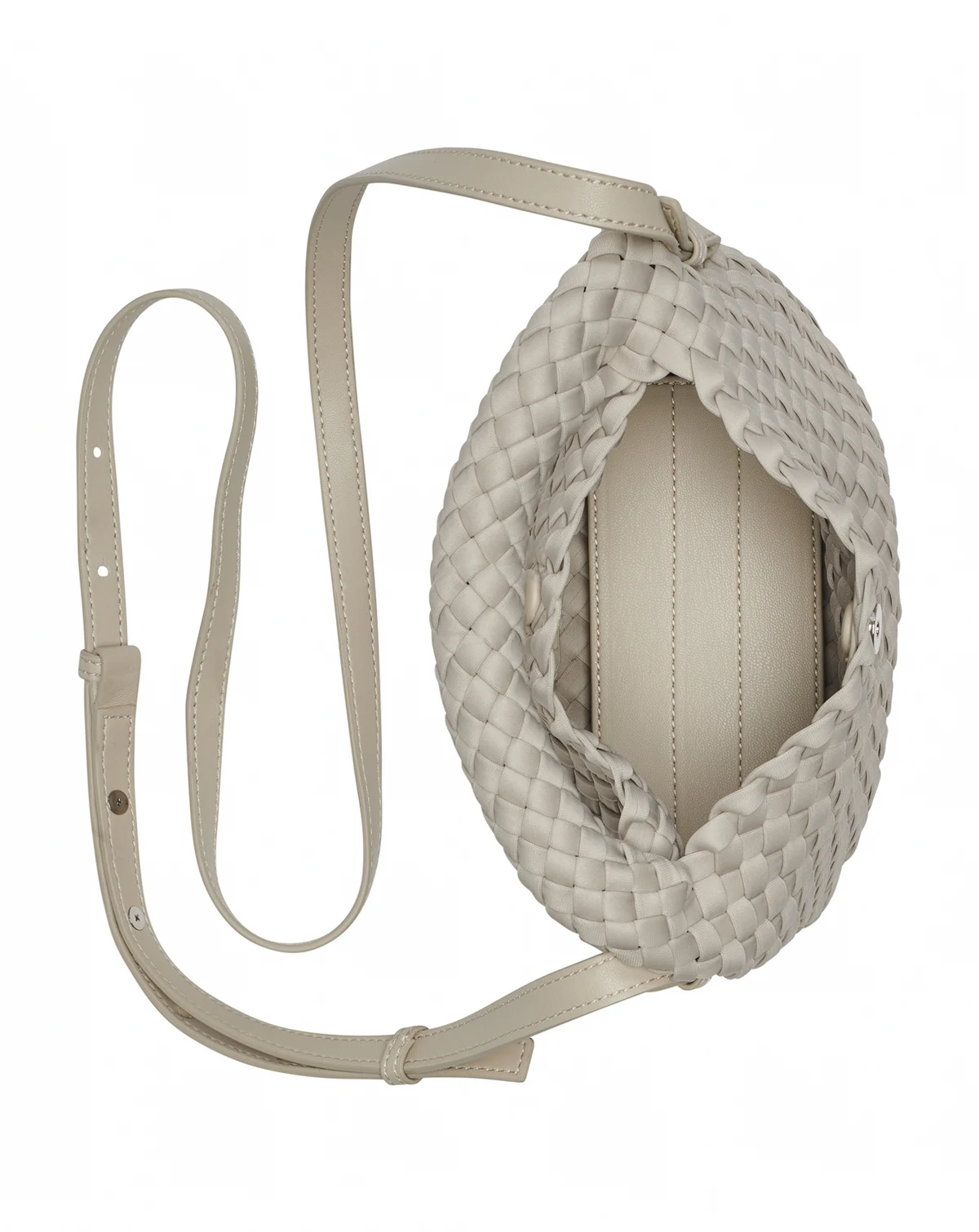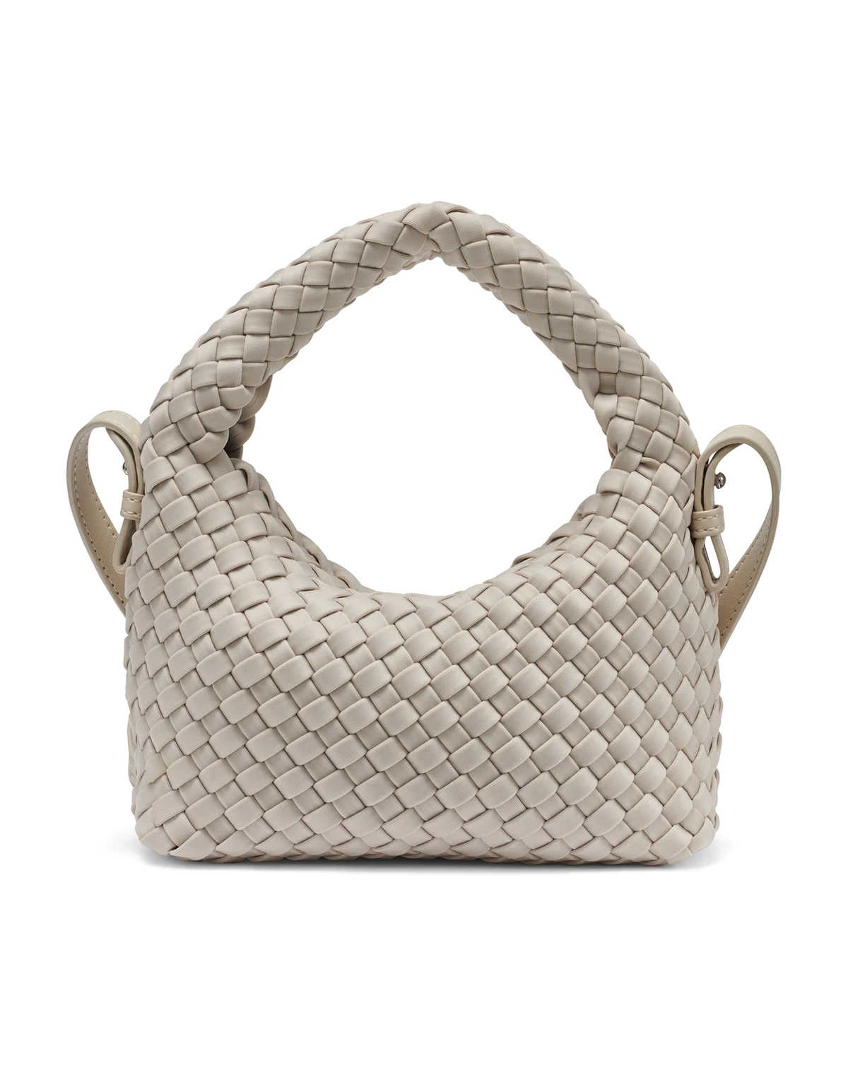 Small-sized bag; 10"W x 6"H x 3.5"D (width is measured across the bottom of handbag); 0.55 lb. approx. weight; Silhouette is based on 5'9" model; Fits a phone