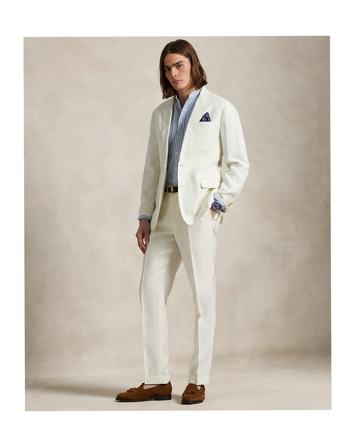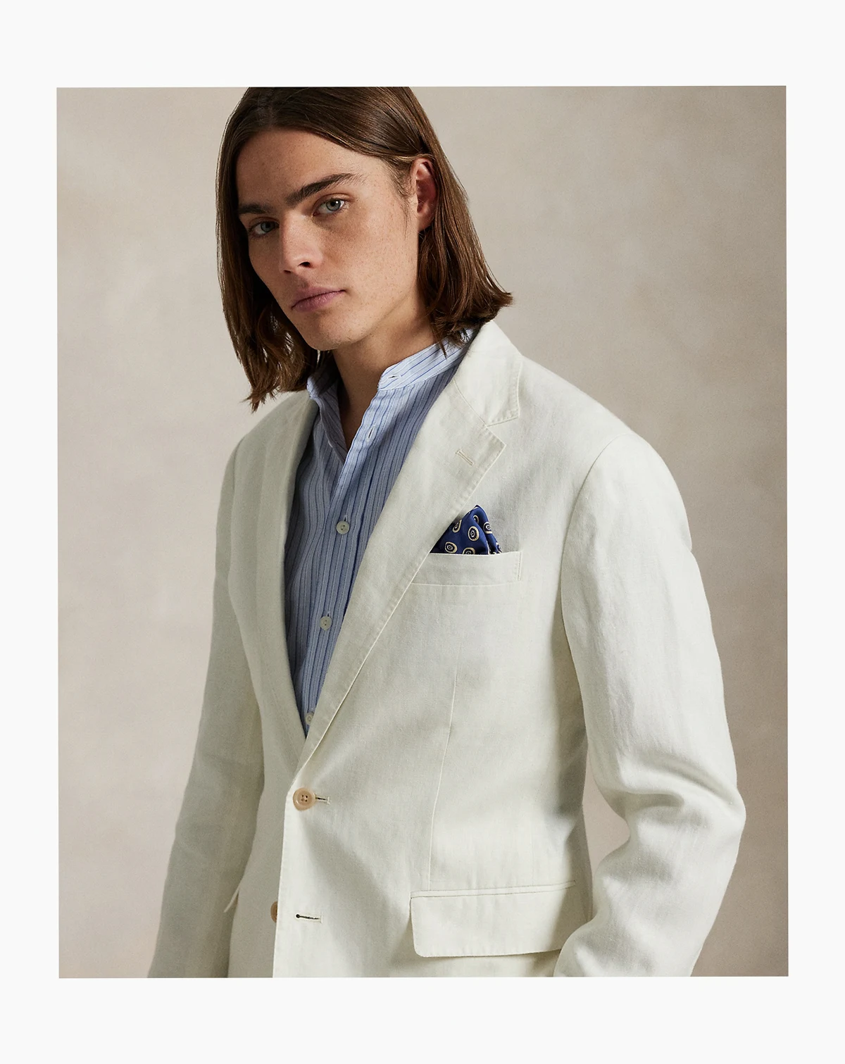 Polo Ralph Lauren's Polo Soft suit jacket puts a modern spin on classic preppy style with a natural shoulder, slightly structured chest and partial lining. This version is crafted with a lightweight linen cloth that was custom-developed for Ralph Lauren.