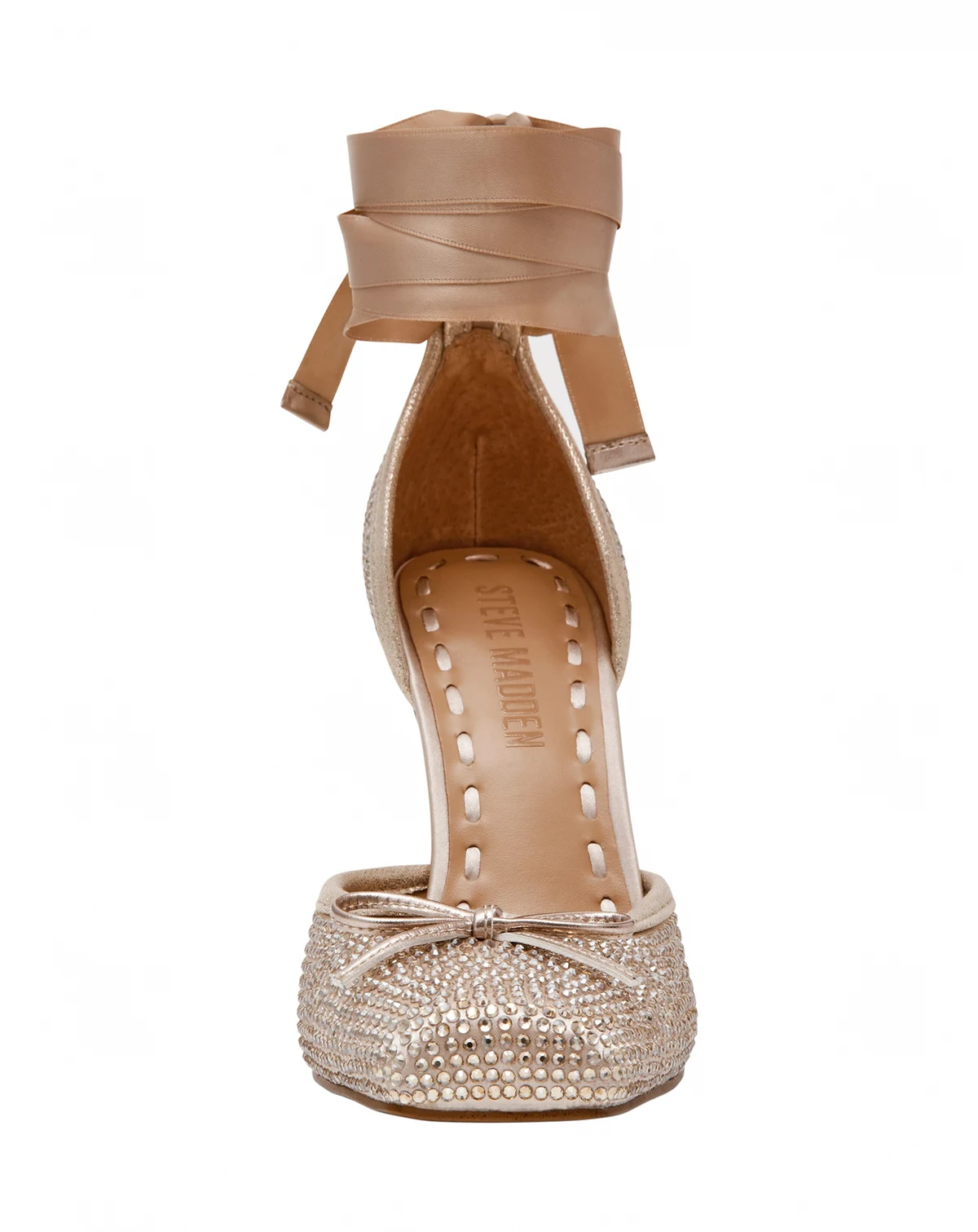 Add a touch of glamour to your ensemble with these Steve Madden pumps, showcasing a delicate lace-up style. The stiletto heels create an elegant, elongated silhouette.