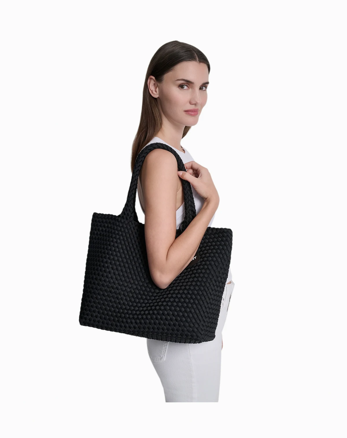 Large-sized bag; 19.5"W x 11"H x 7.5"D (width is measured across the bottom of handbag); 1.91 lb. approx. weight; Silhouette is based on 5'9" model
