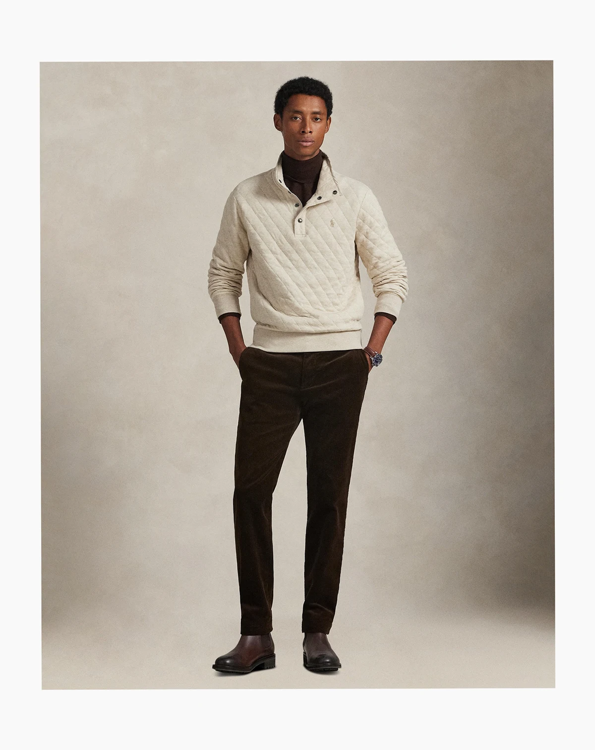 Enjoy extra-soft warmth in this quilted double-knit shirt from Polo Ralph Lauren, insulated with down-alternative fill. A mock neck with twill binding and ribbed cuffs provides a comfortable, secure fit.