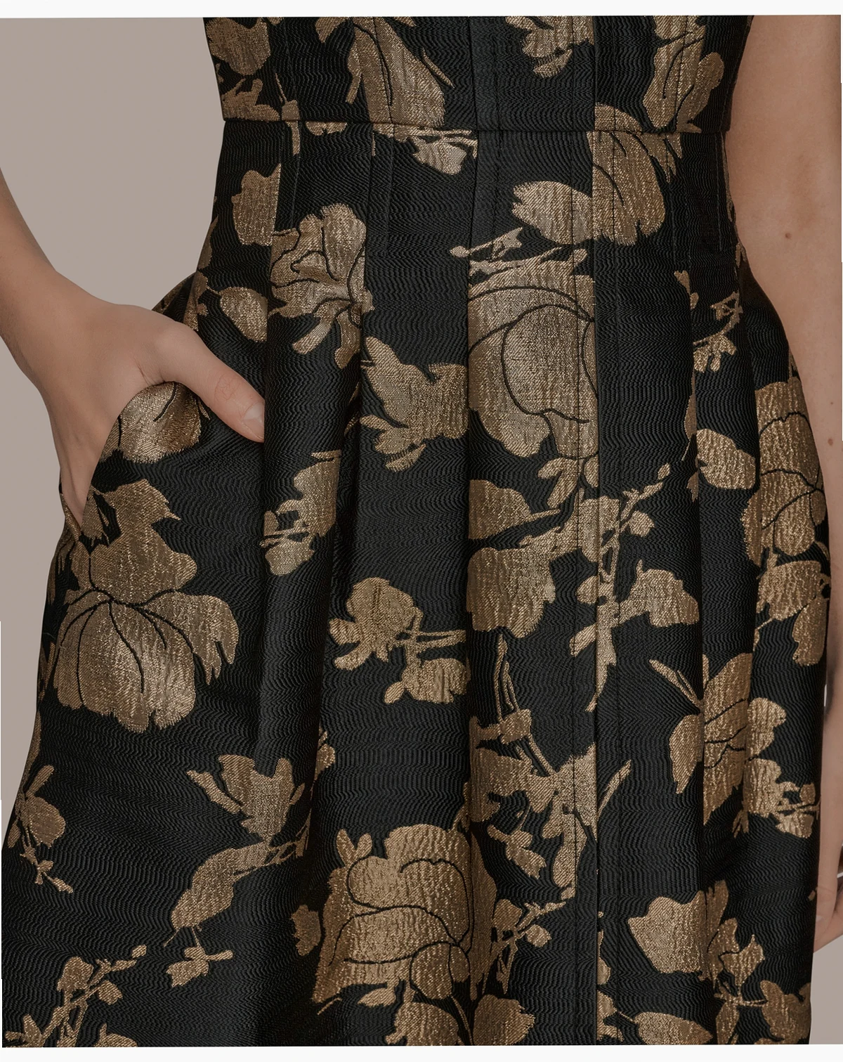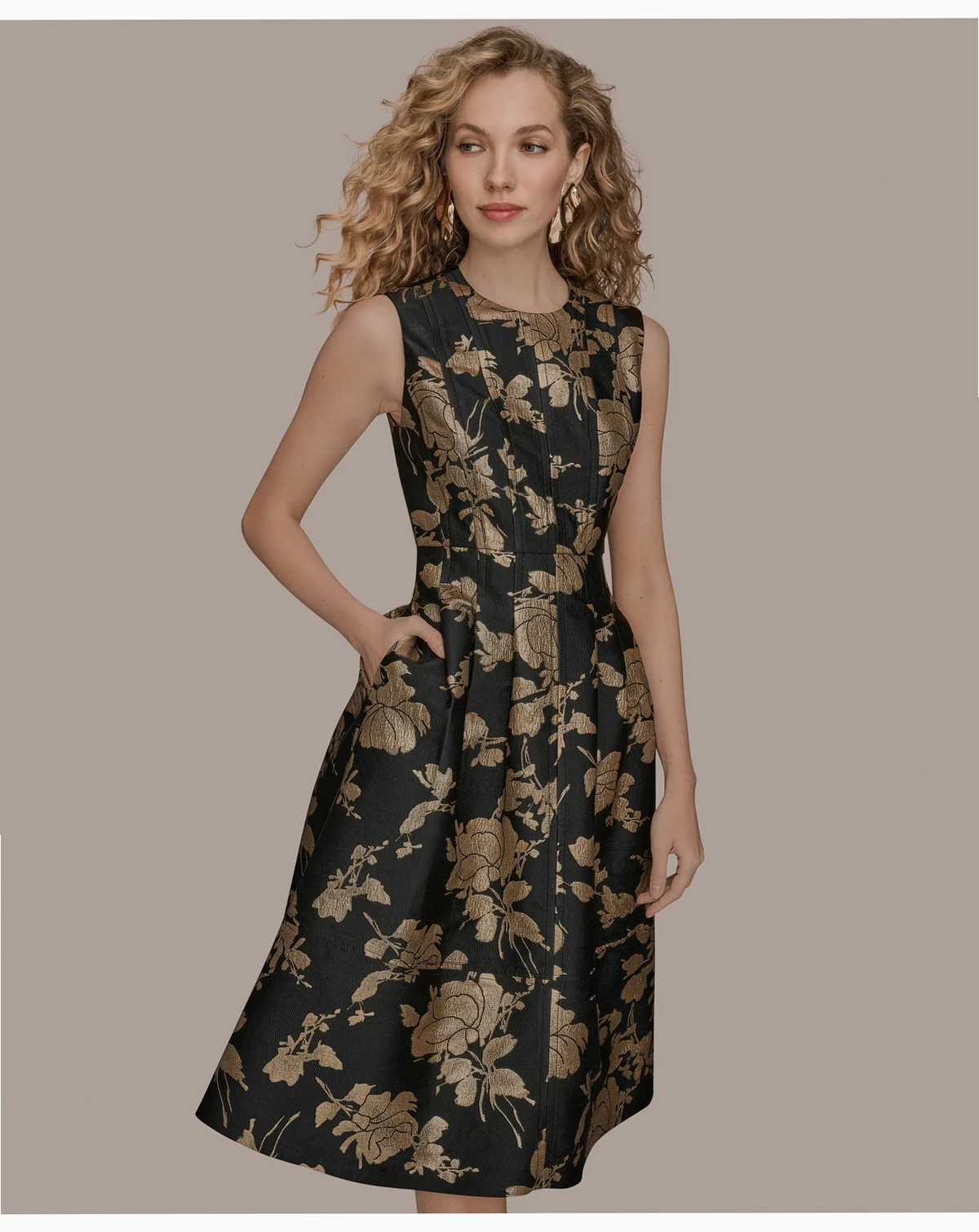 Elevate your wardrobe with this Donna Karan New York dress, a timeless silhouette crafted for modern elegance. Featuring a classic crew neckline, subtle jacquard texture, and a flattering fit-and-flare shape, it's finished with a center back zipper, full lining, and two discreet waist pockets for added functionality and charm.