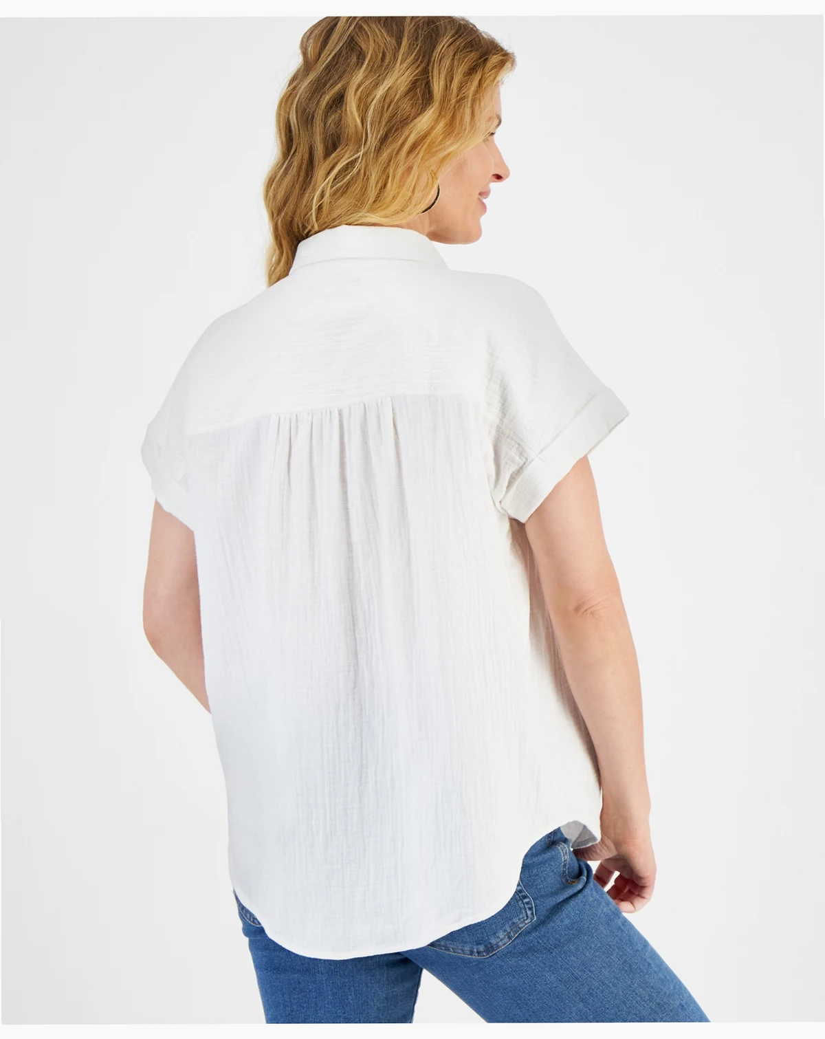 Women's Cotton Gauze Short-Sleeve Button Up Shirt, Created for Macy's