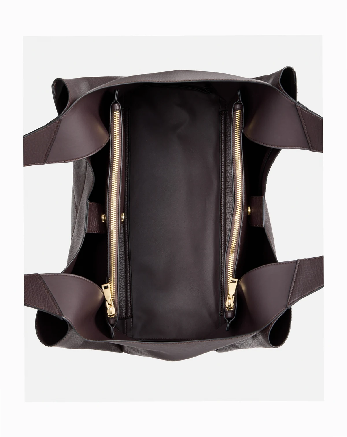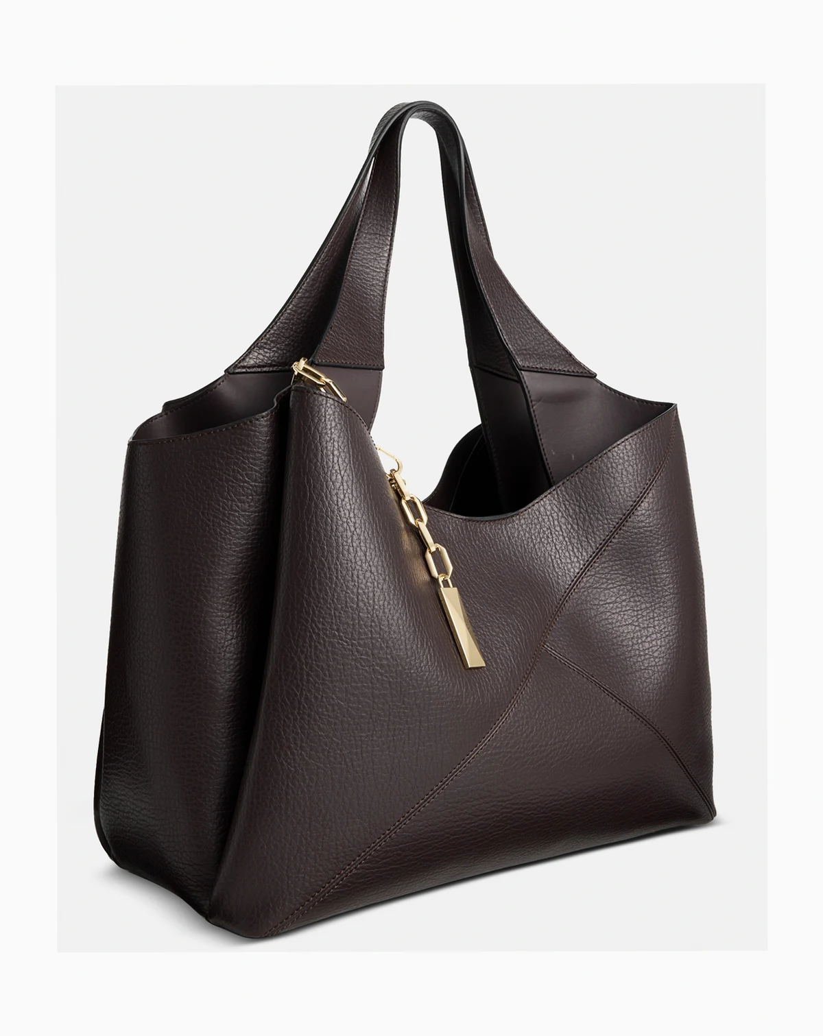 Large-sized bag; 18"W x 12"H x 7.5"D (width is measured across the bottom of handbag); 1.54 lb. approx. weight; Silhouette is based on 5'9" model