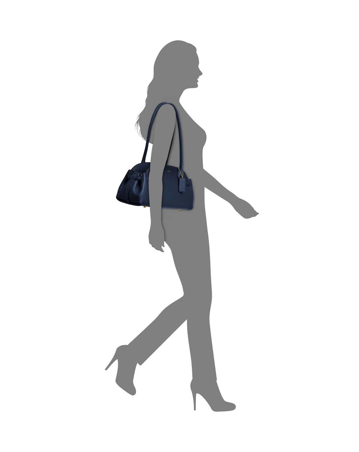 Medium-sized bag; 13-1/3"W x 6-1/4"H x 4-3/4"D (width is measured across the bottom of handbag); 1.2 lb. approx. weight; Silhouette is based on 5'9" model