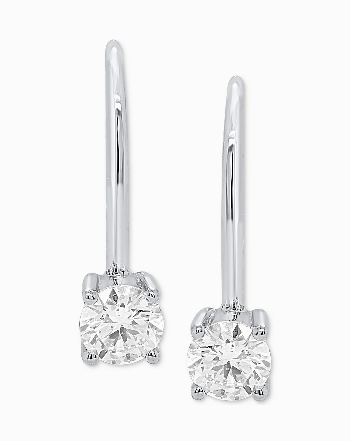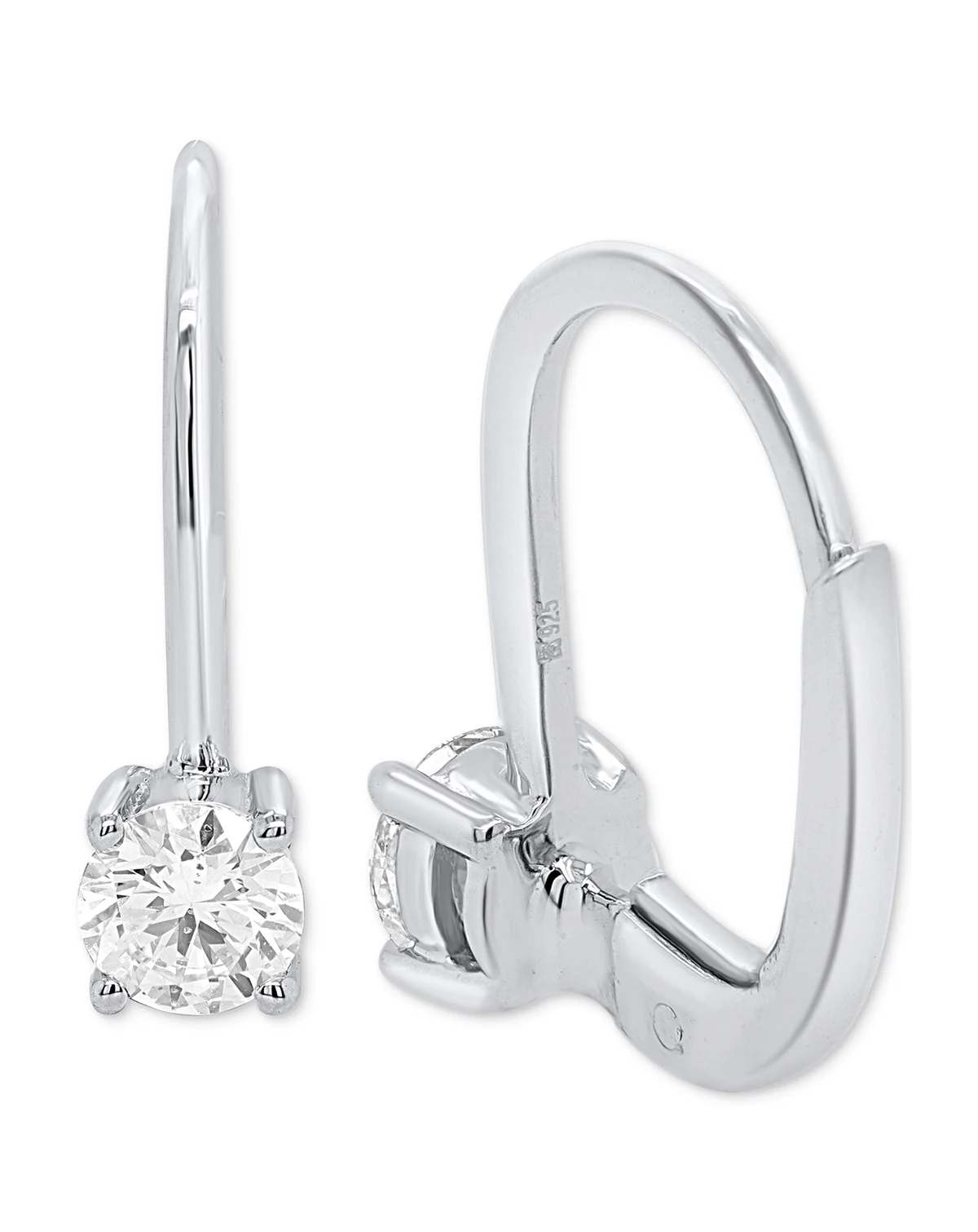 Pretty lab grown diamonds adorn leverback earrings, set in sterling silver or 14k gold-plated sterling silver, from Forever Grown Diamonds.