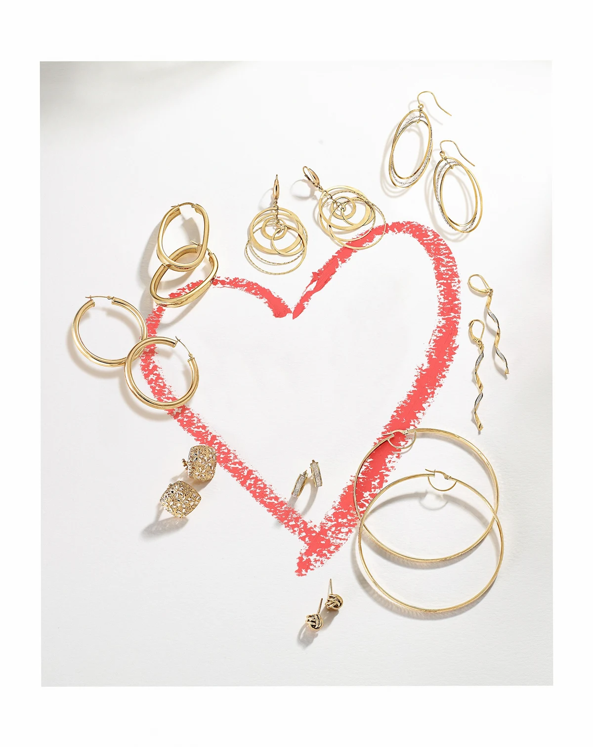 Sophisticated shimmer. A layer of glitter amps up the glamour factor in these otherwise classic hoop earrings. Crafted in 14k rose gold, white gold or gold. Approximate drop: 1/2"