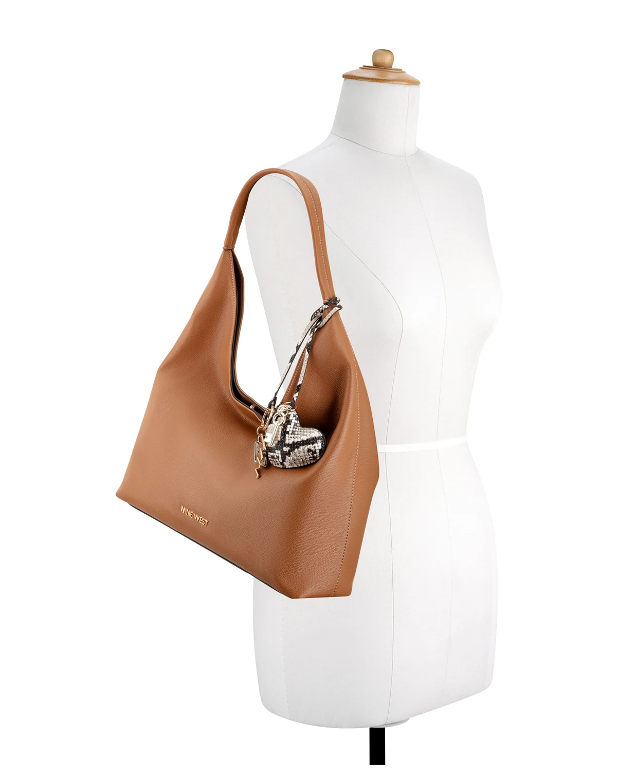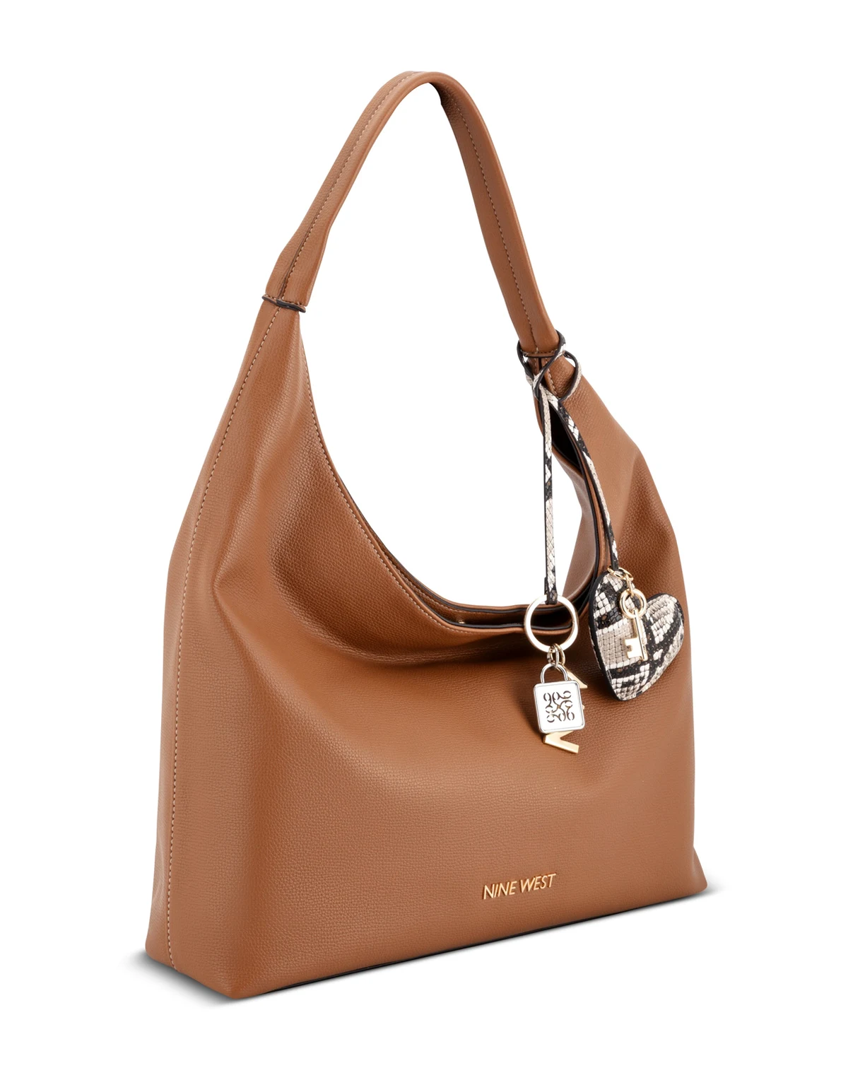 Nine West designer Keylee hobo with internal slip and zipper pocket organization and external hardware details and branding. Slouchy silhouette shape for casual style and includes a removable beautiful charm adornment.