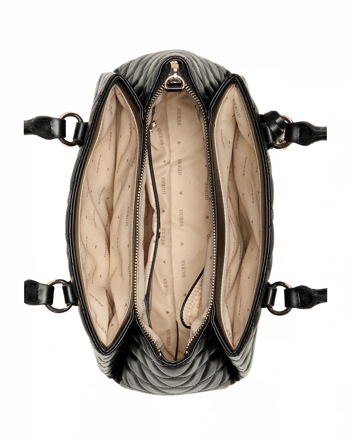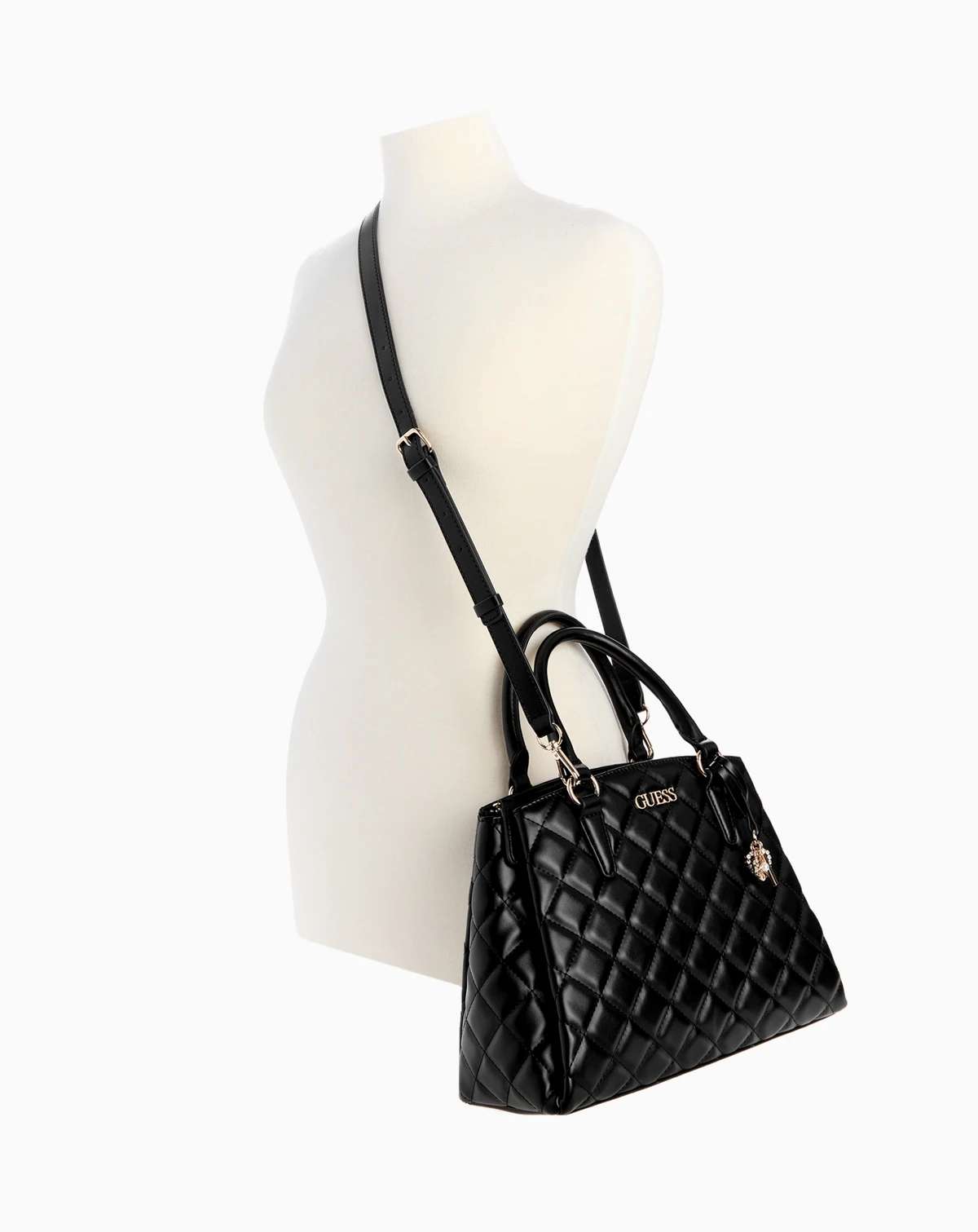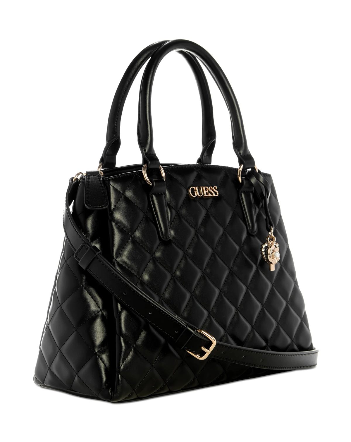 Stylish whether you wear it as a crossbody or carry it by the handles, this versatile Tinsley satchel by GUESS showcases a quilted exterior and triple compartment interior.