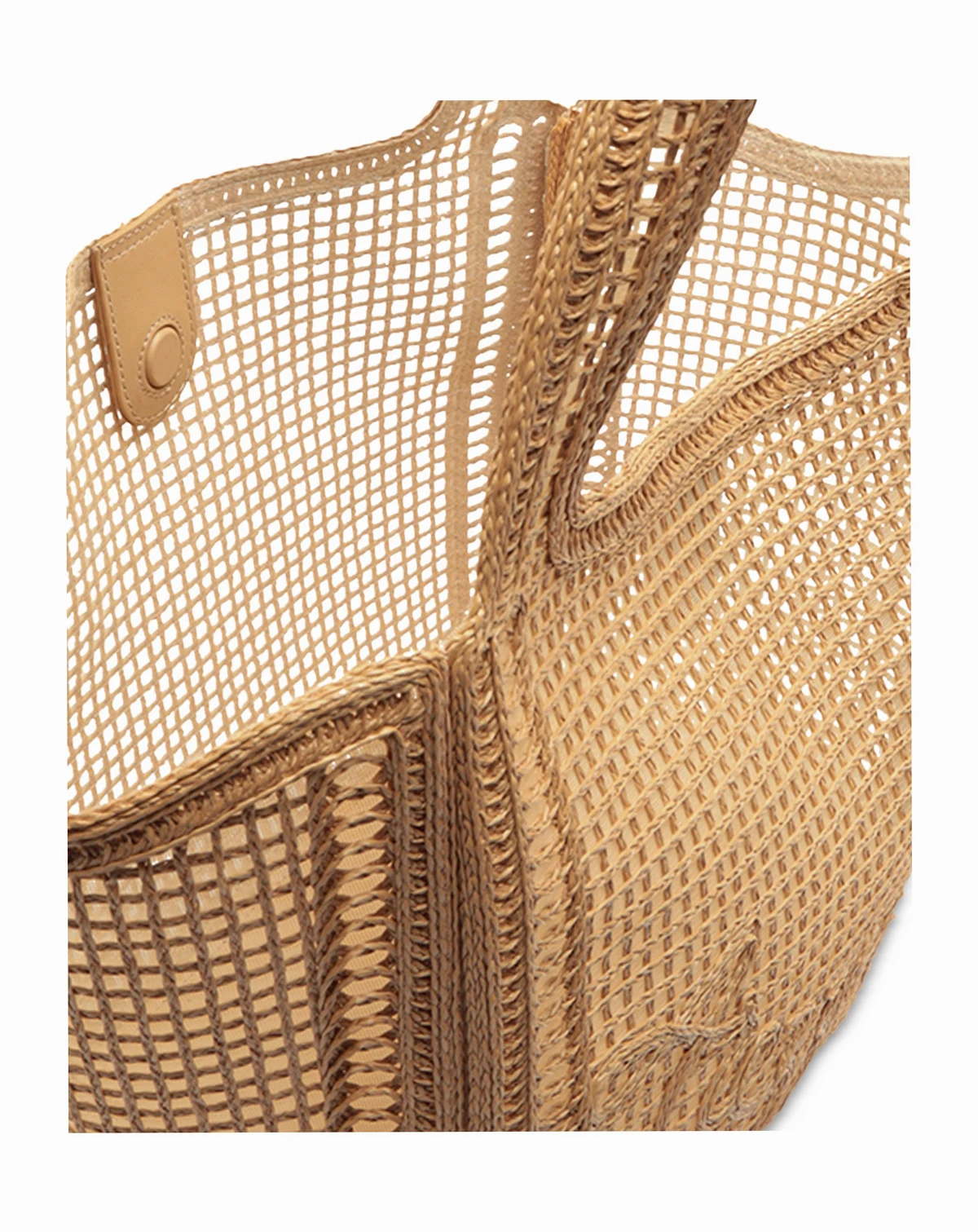 Rely on roomy design for daily carry with this snap-button shopping bag from Arezzo, featuring a woven construction and embroidered script accents. An interior slip pocket helps keep essentials organized on the go.