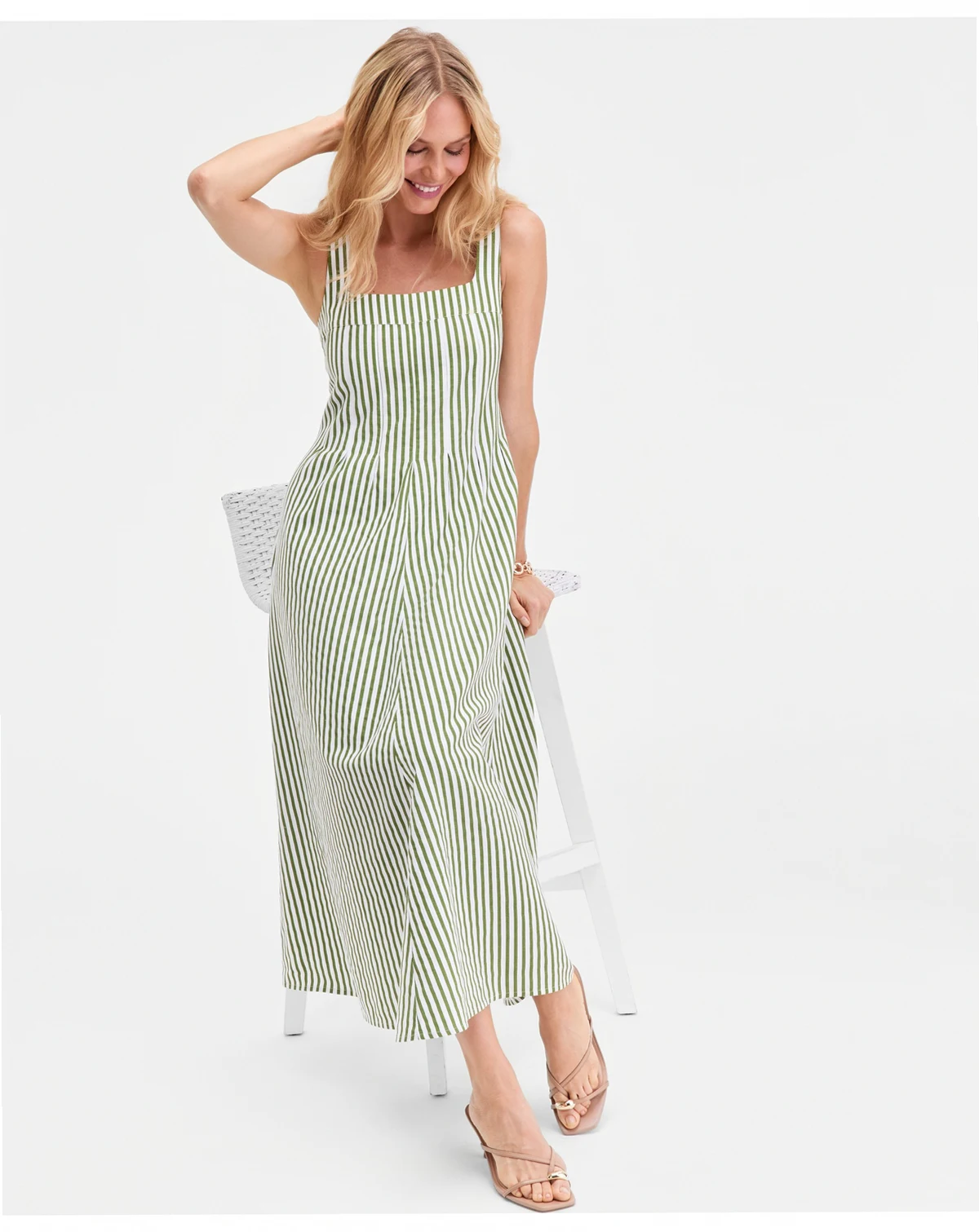 Crafted from a lightweight cotton and linen blend, I.N.C. International Concepts' midi dress stands out with sleek contrasting stripes and a classically flattering square neckline. ABOUT THE BRAND: I.N.C. is inspired by fabulous women—always bold, confident, and stylish.