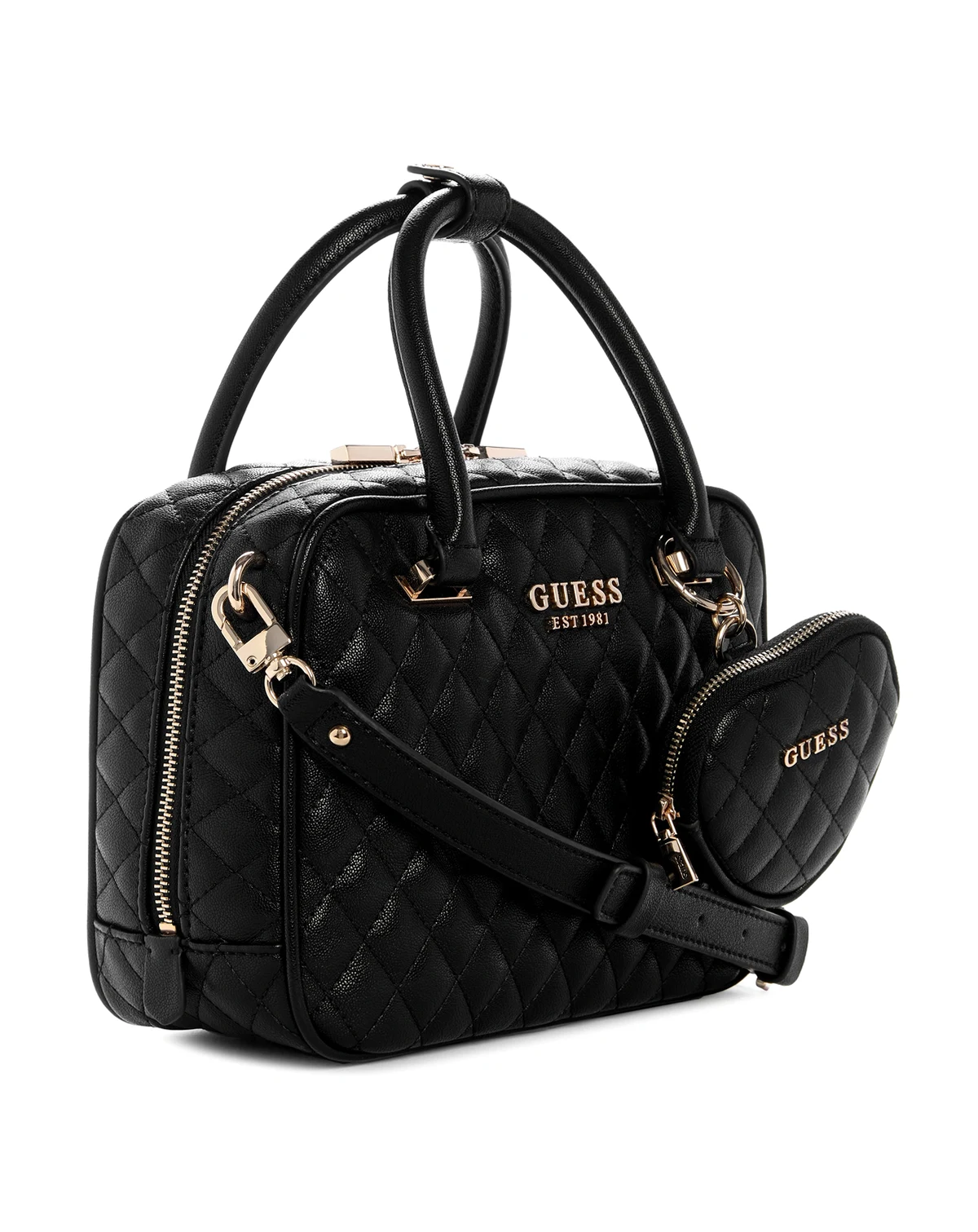 Defined by its boxy satchel shape, this Atabey bag from GUESS features a sleek finish and a structured profile. A top zip closure and detachable crossbody strap offer both polished looks and practical wear.