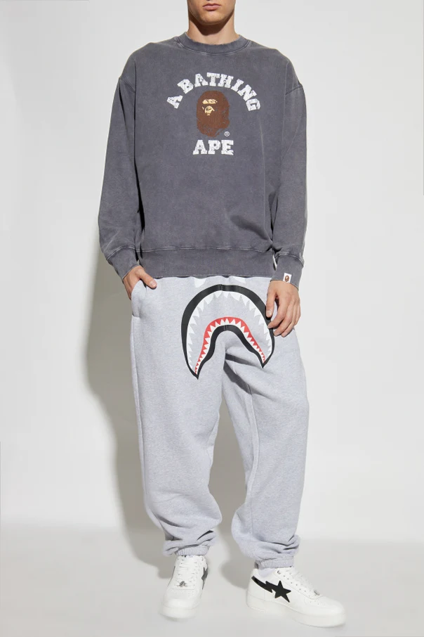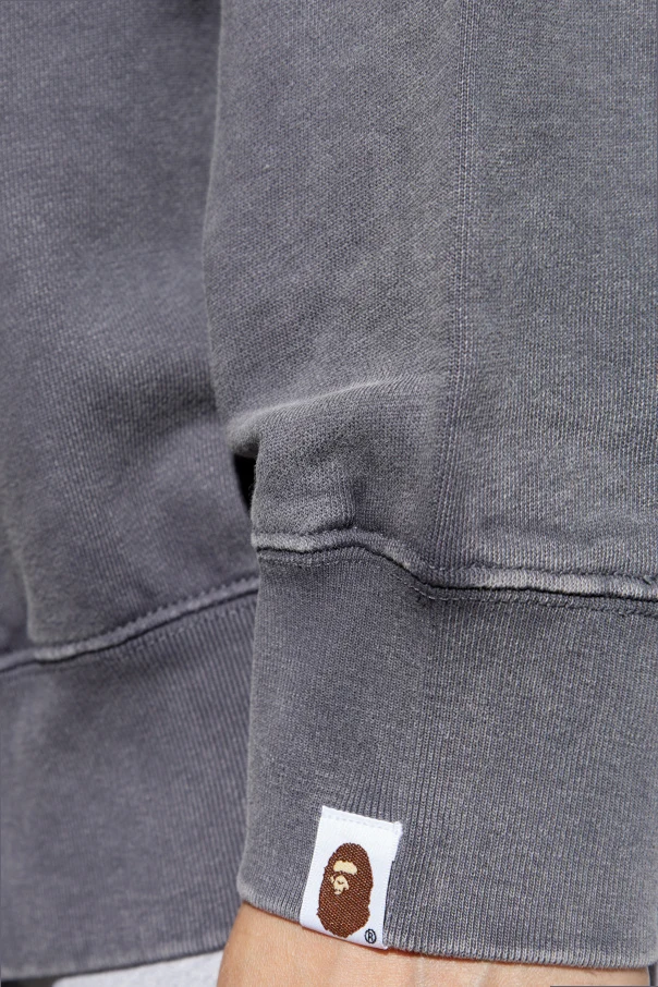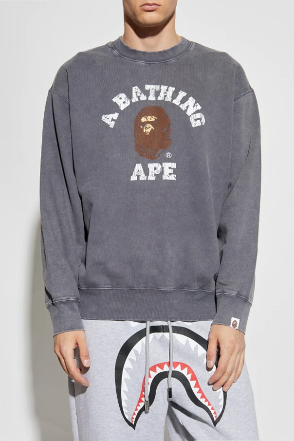 Elevate your casual repertoire with this A BATHING APE® crewneck sweatshirt, a masterful interpretation of refined streetwear. Crafted from a substantial cotton fleece, the garment showcases a skillfully executed washed gray hue, imparting an artful vintage aesthetic. Its regular fit silhouette is enriched by a subtly shaded finish and a classic round neckline, offering a harmonious balance of comfort and sophistication.