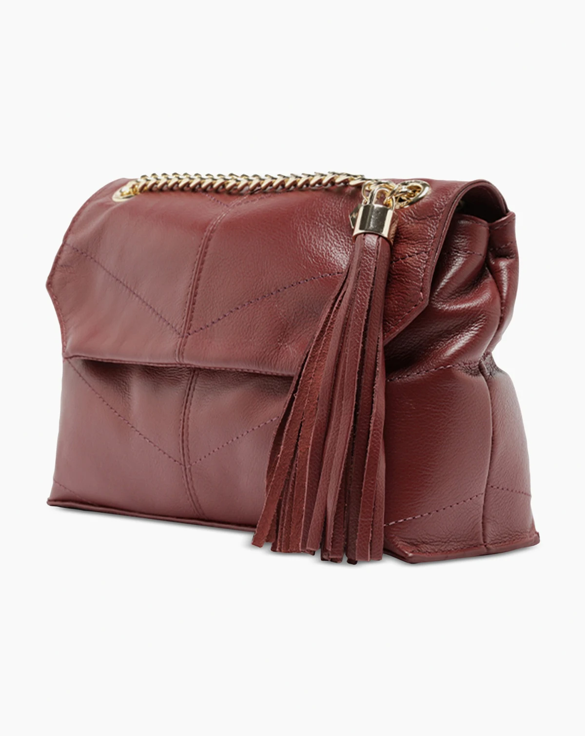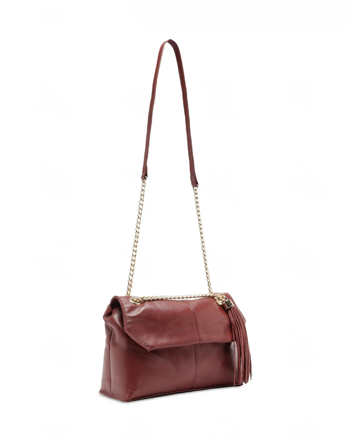 Accented with decorative stitching and a gold chain tassel, this Arezzo crossbody bag offers a compact and stylish profile. The adjustable strap and snap button closure provide a customizable and secure fit.