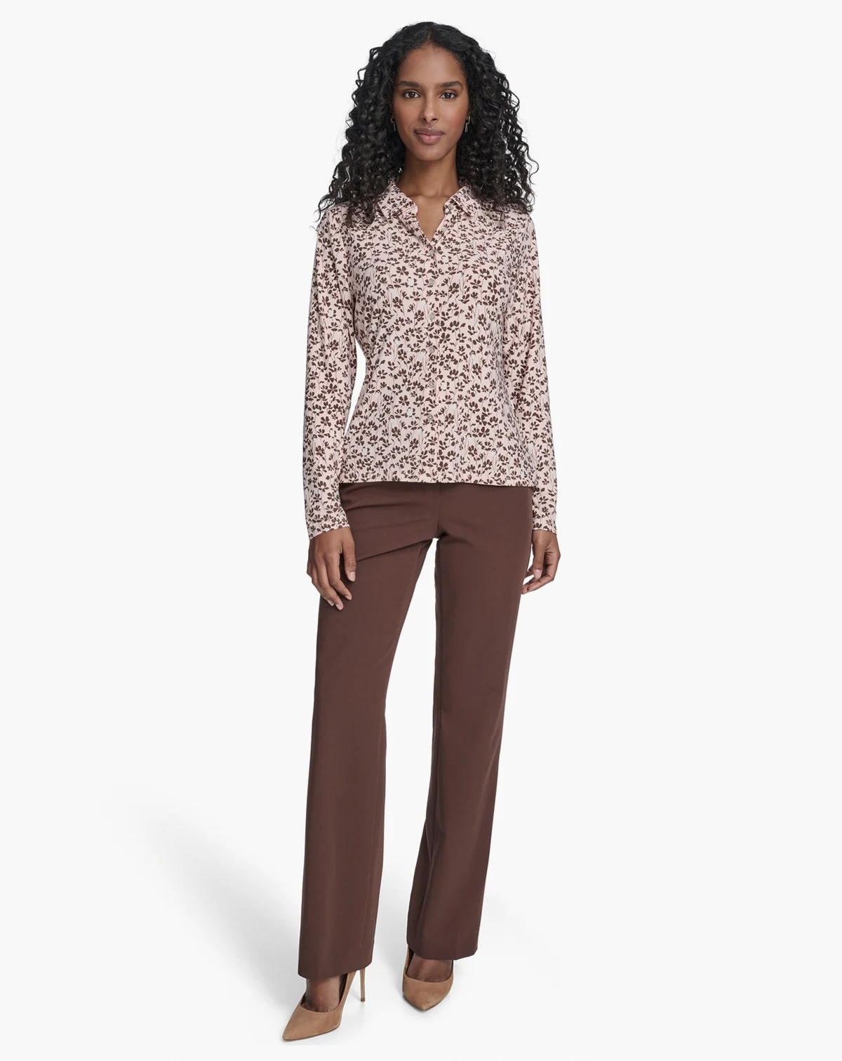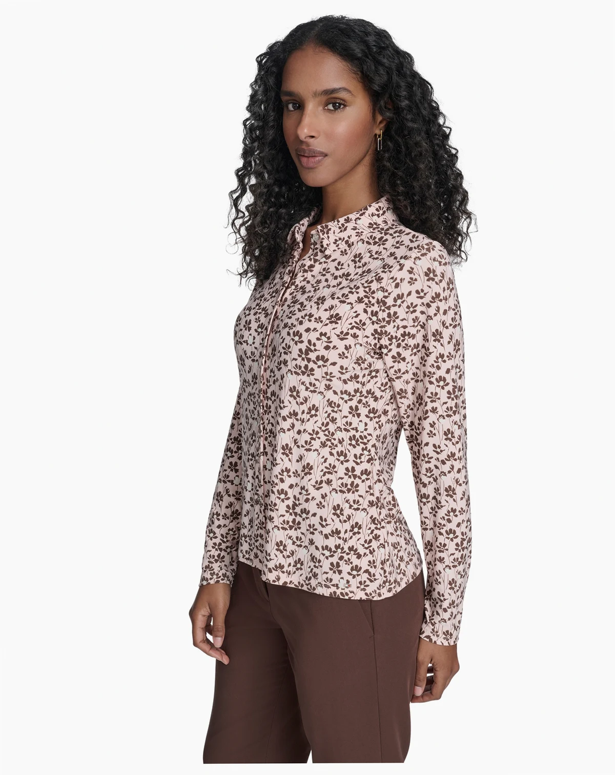 Enjoy a blossoming floral pattern on this knit top from Tommy Hilfiger, featuring a collared design and long sleeves for a polished look. The button closure provides a versatile and easy-to-wear style.