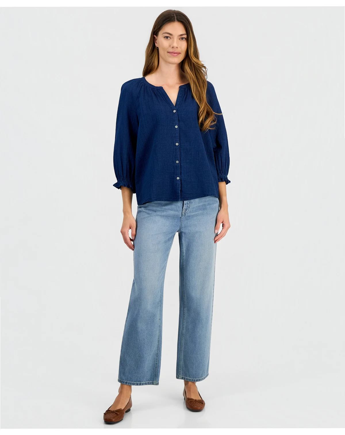 Women's True Indigo Cotton Blouse, Macy's Exclusive
