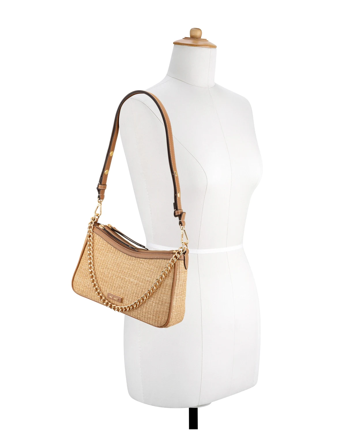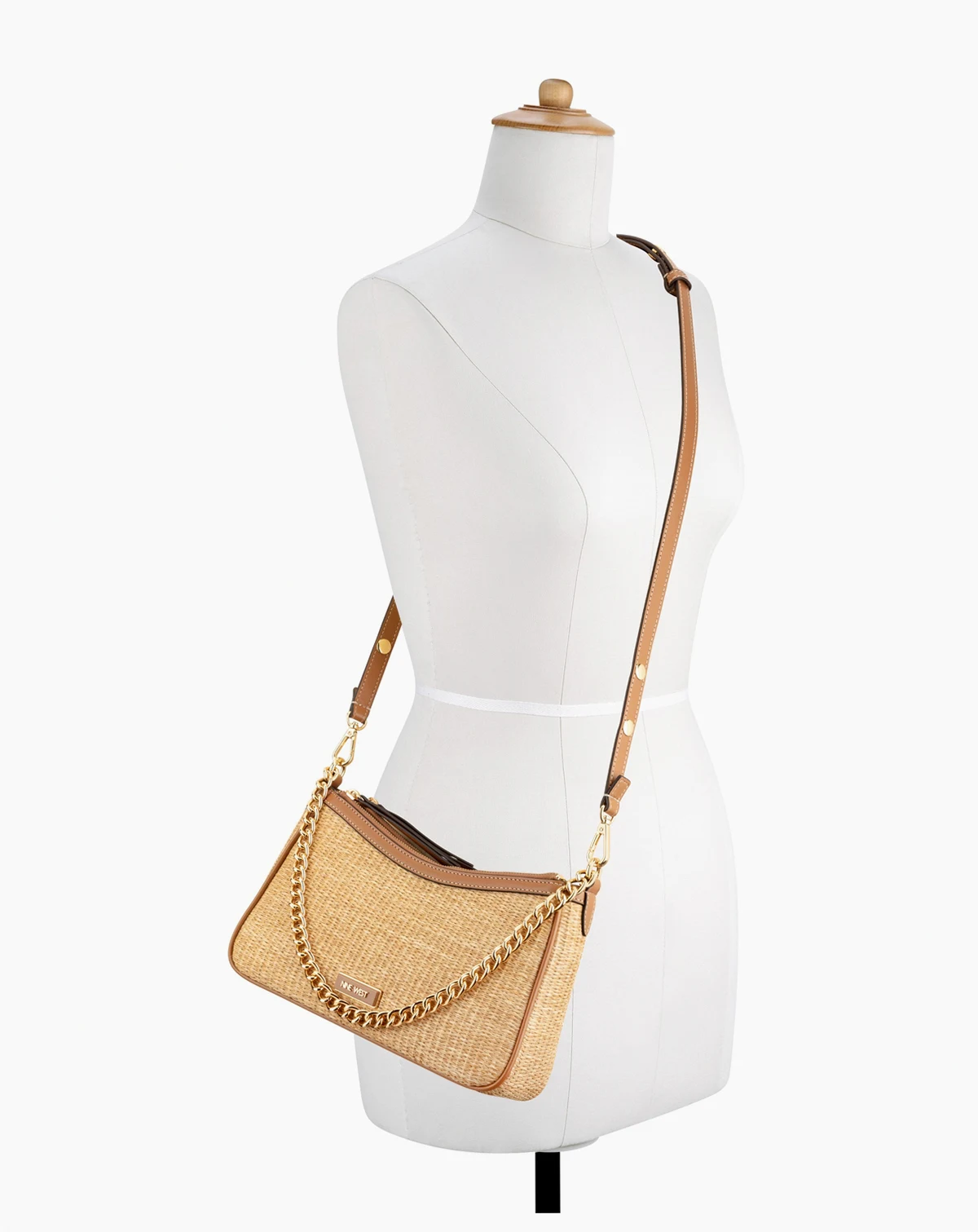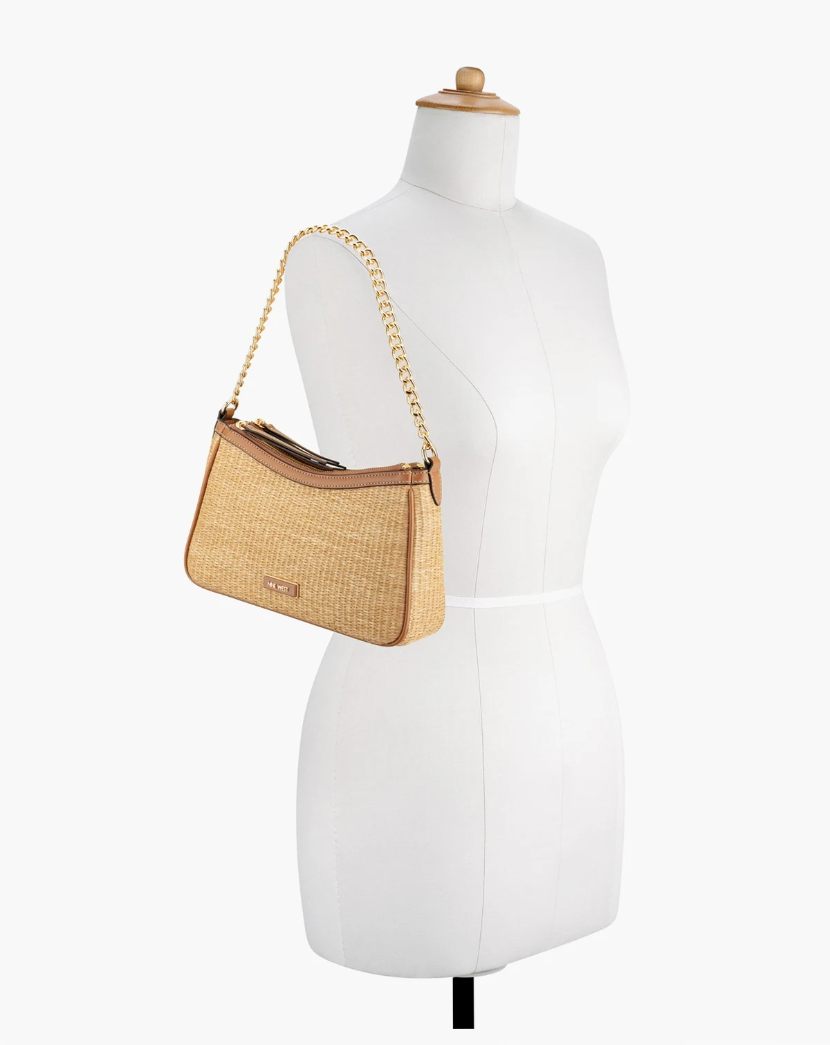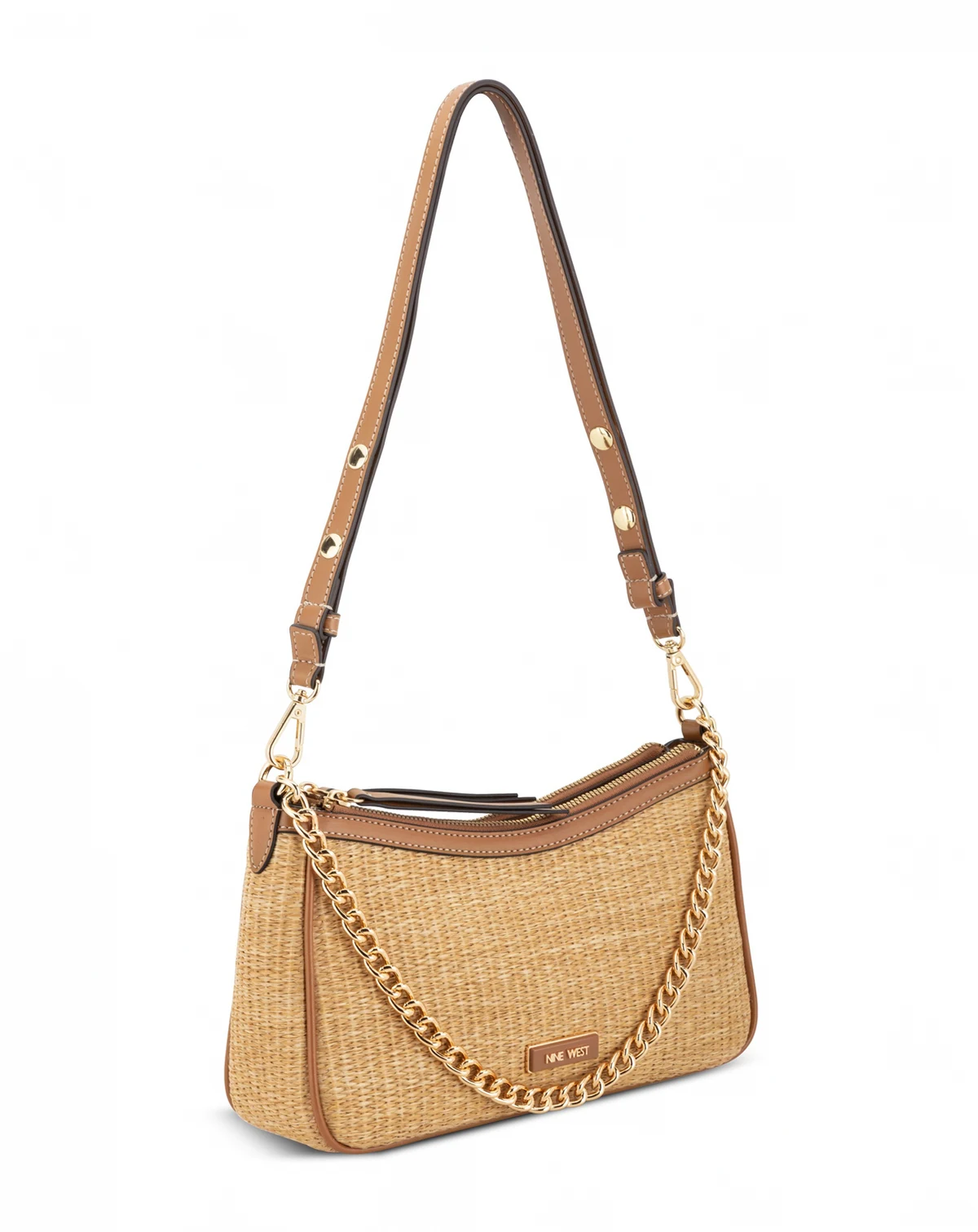 Nine West designer Denzielle convertible shoulder bag. Perfect for all occasions as it is a three in one converting from chain shoulder to longer shoulder as well as crossbody with snap strap function. Internal organization an updated modern enamel hardware.