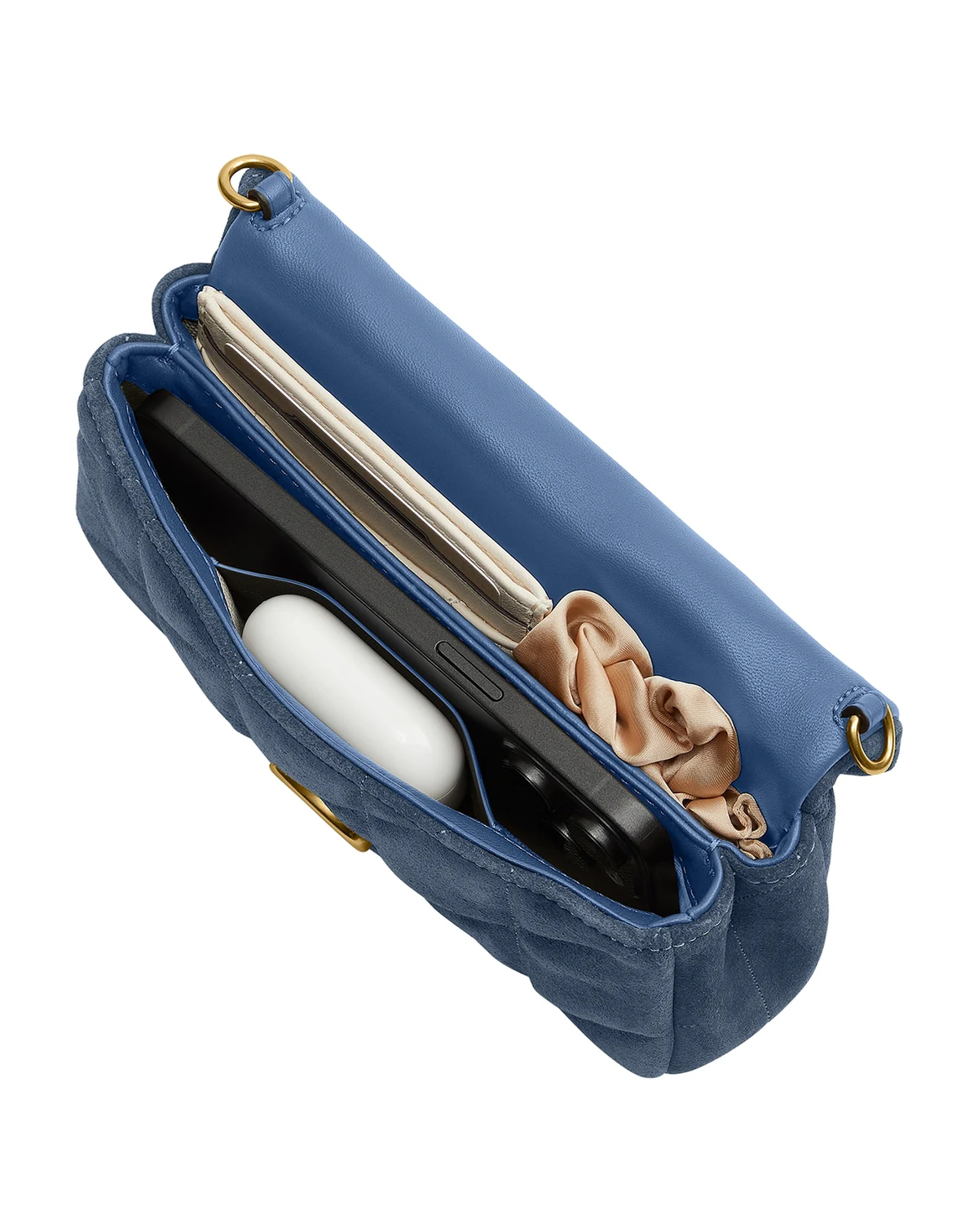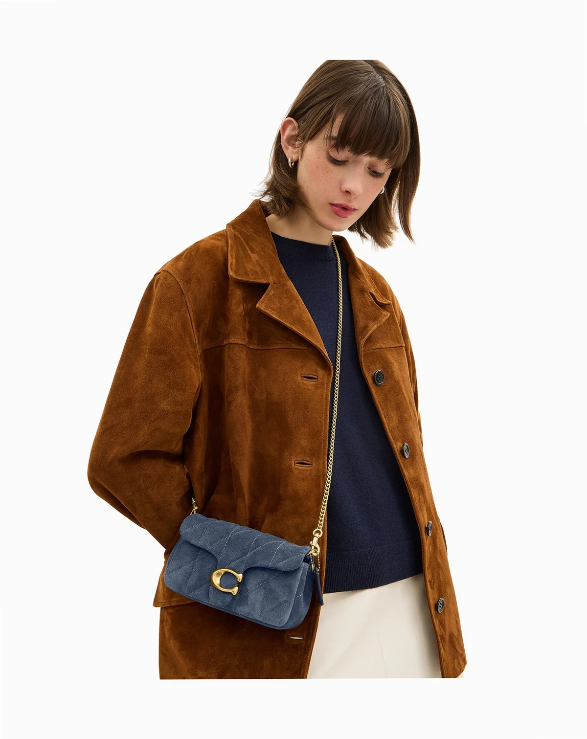 Soft and elegant, this quilted COACH crossbody handbag offers both a detachable chain and wrist straps for versatile styling. It features a secure snap closure, two credit card slots, and an inside multifunction pocket to keep essentials neatly organized.