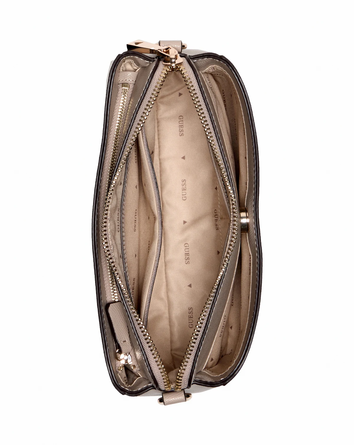 Chic and compact, this GUESS Lynda girlfriend bag blends thoughtful design with everyday ease. For a small handbag, it features a secure zippered closure, a magnetic snap front pocket, a back zip ones, and two more on the interior side, along with an adjustable crossbody strap for hands-free style.