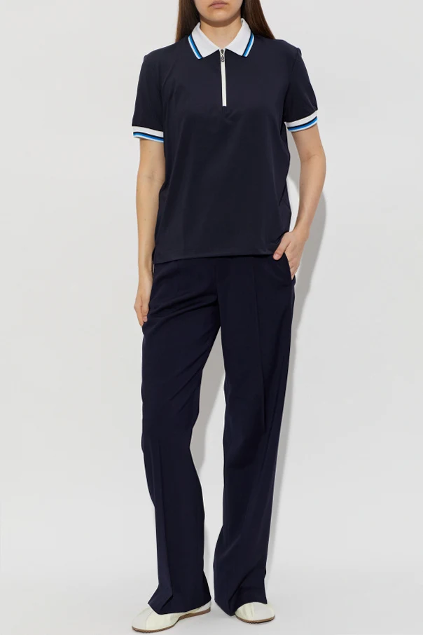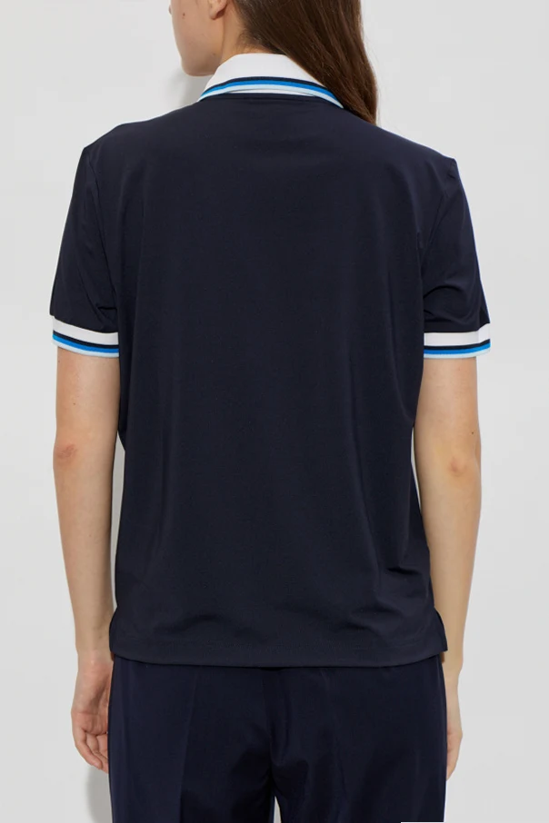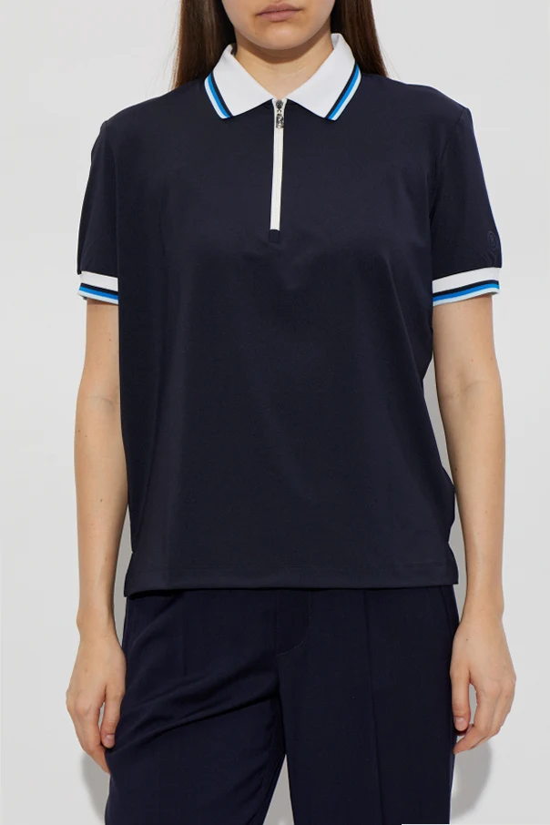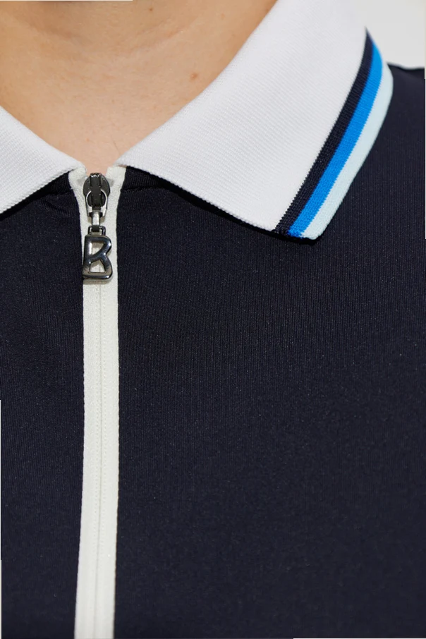 Exude refined sophistication with the Polo ‘Laurina’ by BOGNER , a striking expression of modern elegance. Crafted from a sumptuous, smooth knit blend that offers both breathability and gentle stretch, this navy blue polo is designed for those who appreciate understated luxury. Its classically tailored, straight silhouette ensures a relaxed yet polished fit, while the short sleeves and standard length create a timeless appeal.