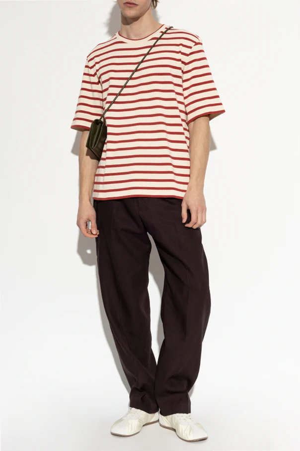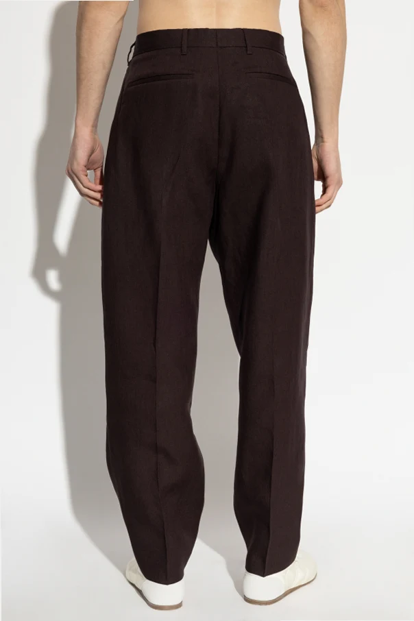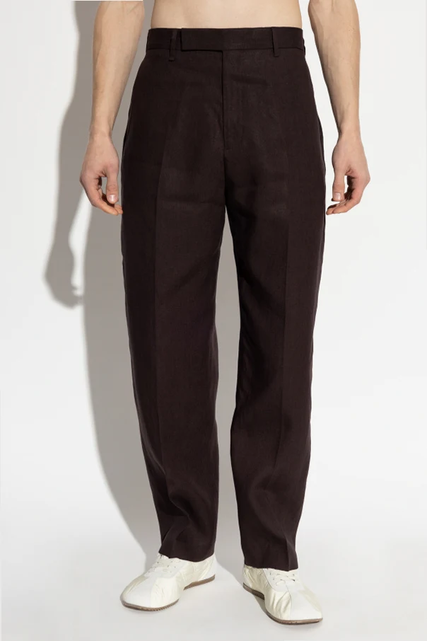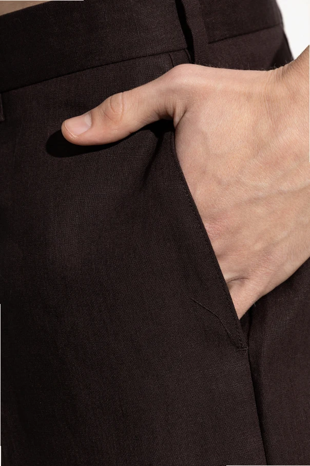 Impeccably tailored, these linen trousers by Paul Smith exemplify timeless sophistication with their classic, straight-leg silhouette and elegant pressed crease. The subtle tapering toward the ankle complements the refined shape, while the smooth, unpatterned finish highlights the quiet luxury of premium linen, lending both breathability and a graceful matte texture favored in exclusive collections.