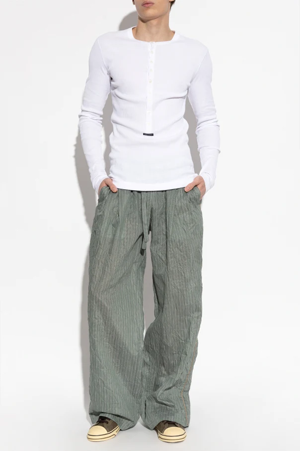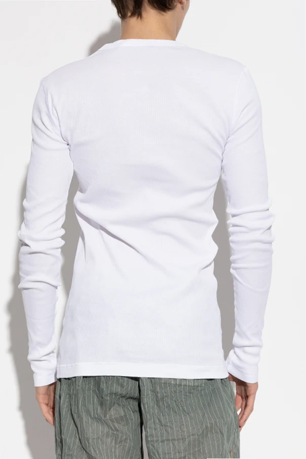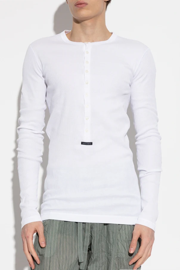 Experience a harmonious blend of modern refinement and comfort with this ribbed long-sleeve t-shirt by Dolce & Gabbana, presented in an immaculate white hue. Tailored in a slim, subtly elongated silhouette, its classic crew neck lends timeless appeal while accentuating the sophisticated shape.