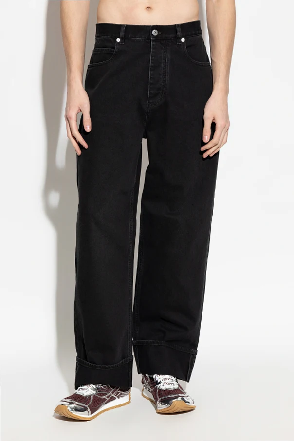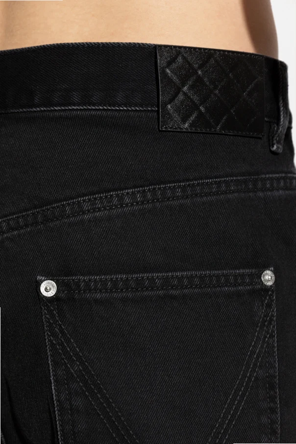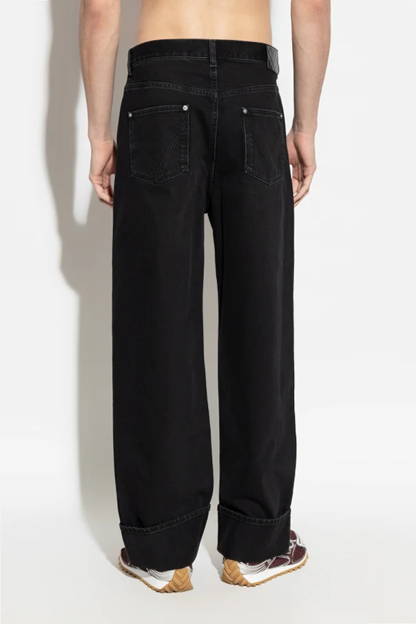 Elevate your wardrobe with these black turtleneck jeans by Bottega Veneta , distinguished for their refined regular fit and effortlessly straight silhouette. Tailored from classic, rigid denim, these jeans offer enduring structure without the compromise of stretch, ensuring each piece retains its shape and firm feel. The artfully wide cuffed hems present an immediately recognizable touch, embodying the modern sophistication that defines this design.