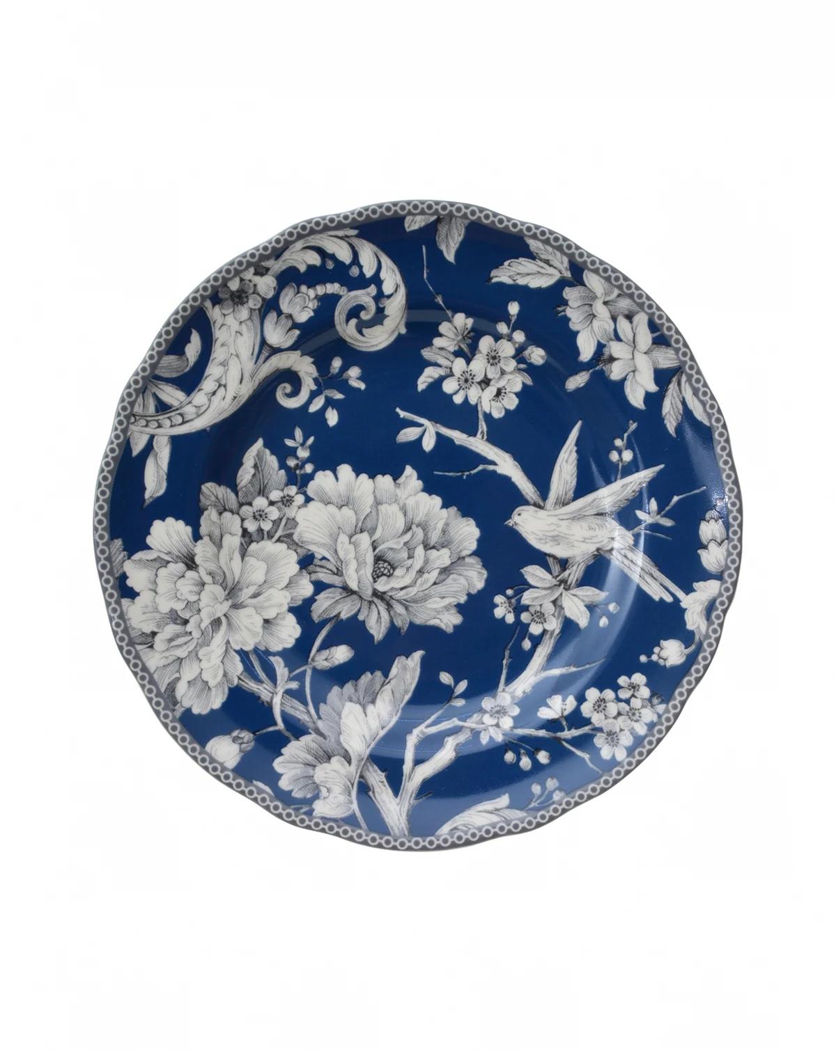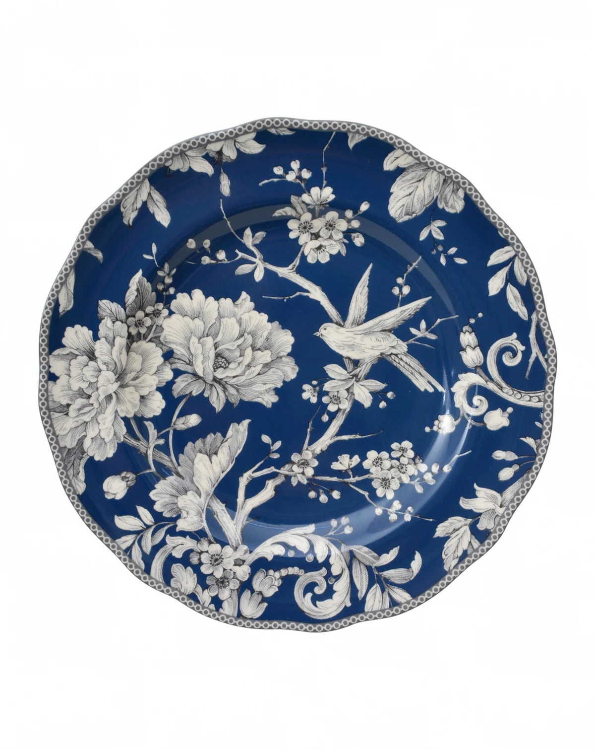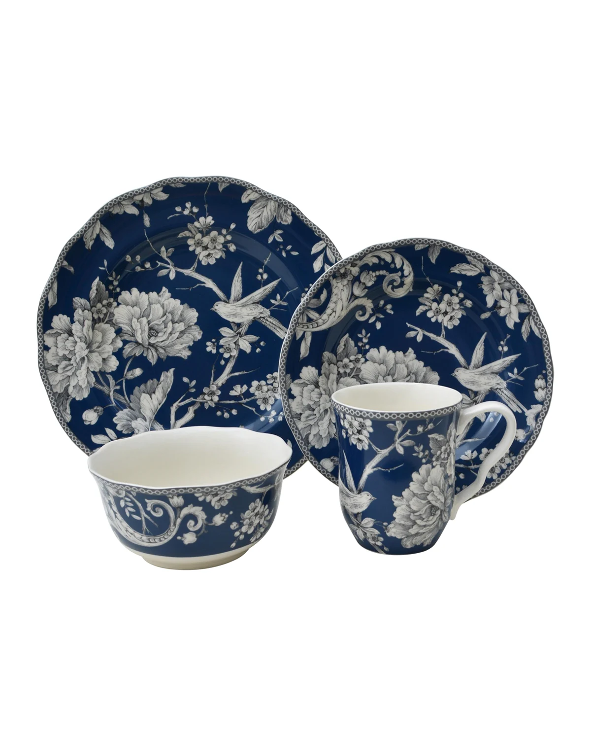 Meet the Adelaide Dinnerware Collection, inspired by a 1770 Toile pattern. This porcelain dinnerware set features a romantic spring scene of birds singing among flowering branches in an intricate woodland tableau. The timeless elegance of Toile lends this collection a refined appeal that will last for years to come. The lovely pattern and the classic style of the porcelain are truly delightful, but the set is also durable and practical. Made of chip-resistant porcelain that is safe for the microwave and the dishwasher, Adelaide dinnerware is both beautiful and functional. This round 16-piece set includes service for four people, with four dinner plates, four salad plates, four cereal bowls, and four matching mugs.