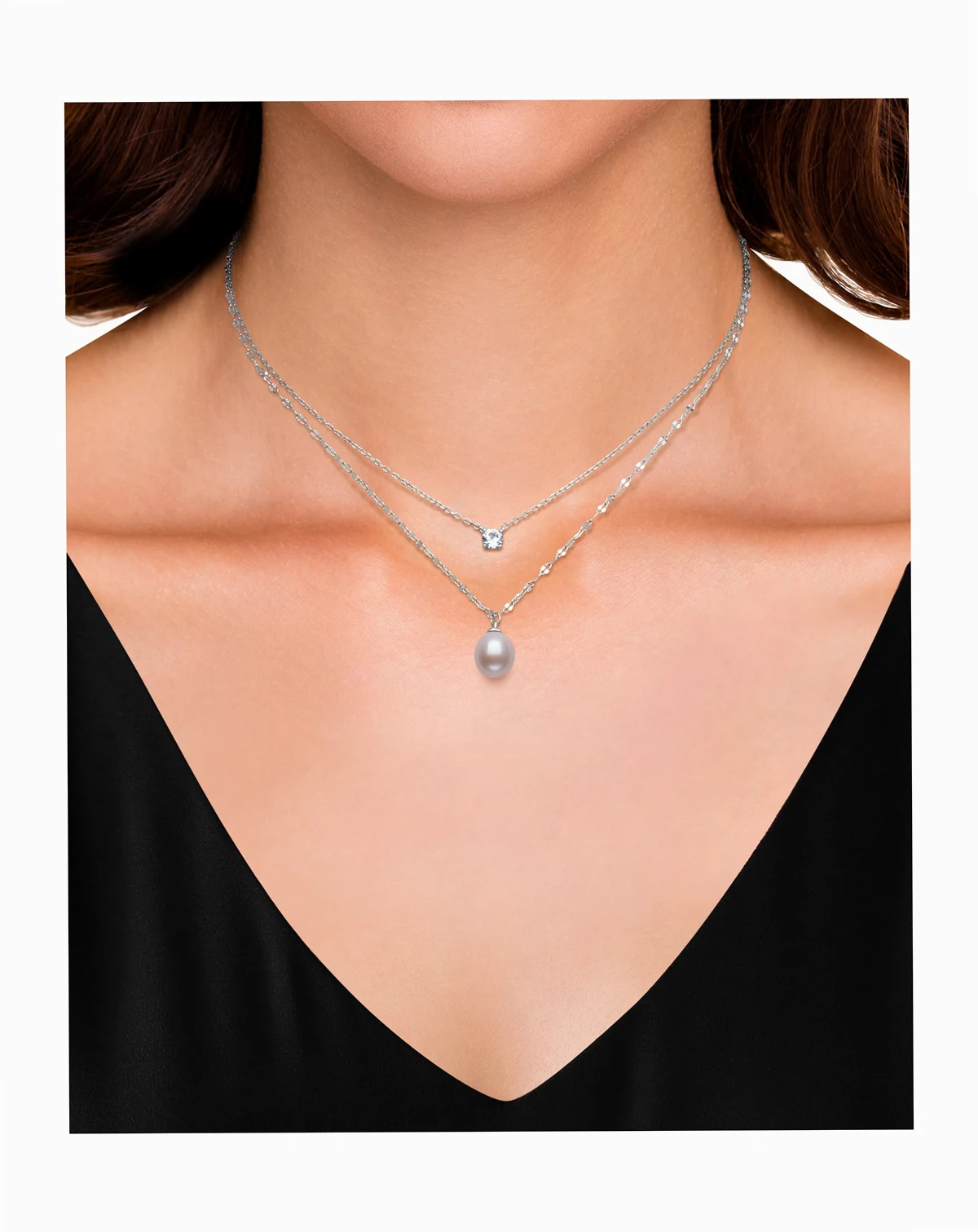 Enhance your jewelry collection with this Belle de Mer drop necklace, featuring delicate blush pink cultured freshwater pearls accented with sparkling lab-created sapphires. Crafted in sterling silver, it combines a Lana chain with a diamond-cut cable chain and an inner extender, secured with a spring ring clasp for a versatile and sleek finish.