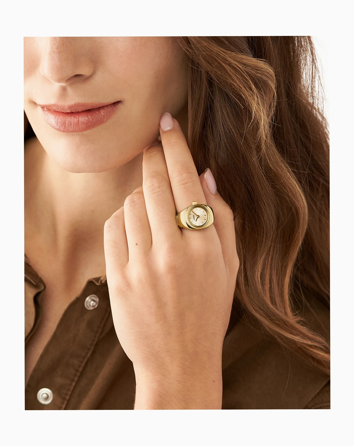 Women's Ring Watch Two-Hand Gold-Tone Stainless Steel Bracelet Watch, 15mm