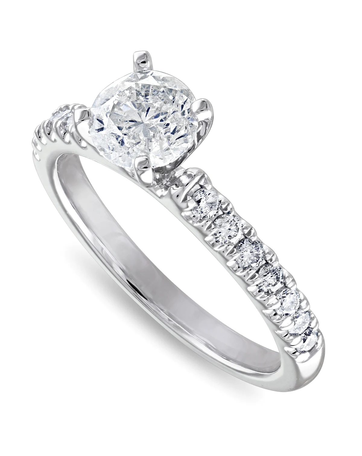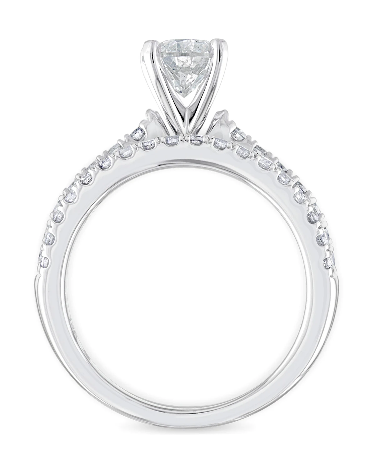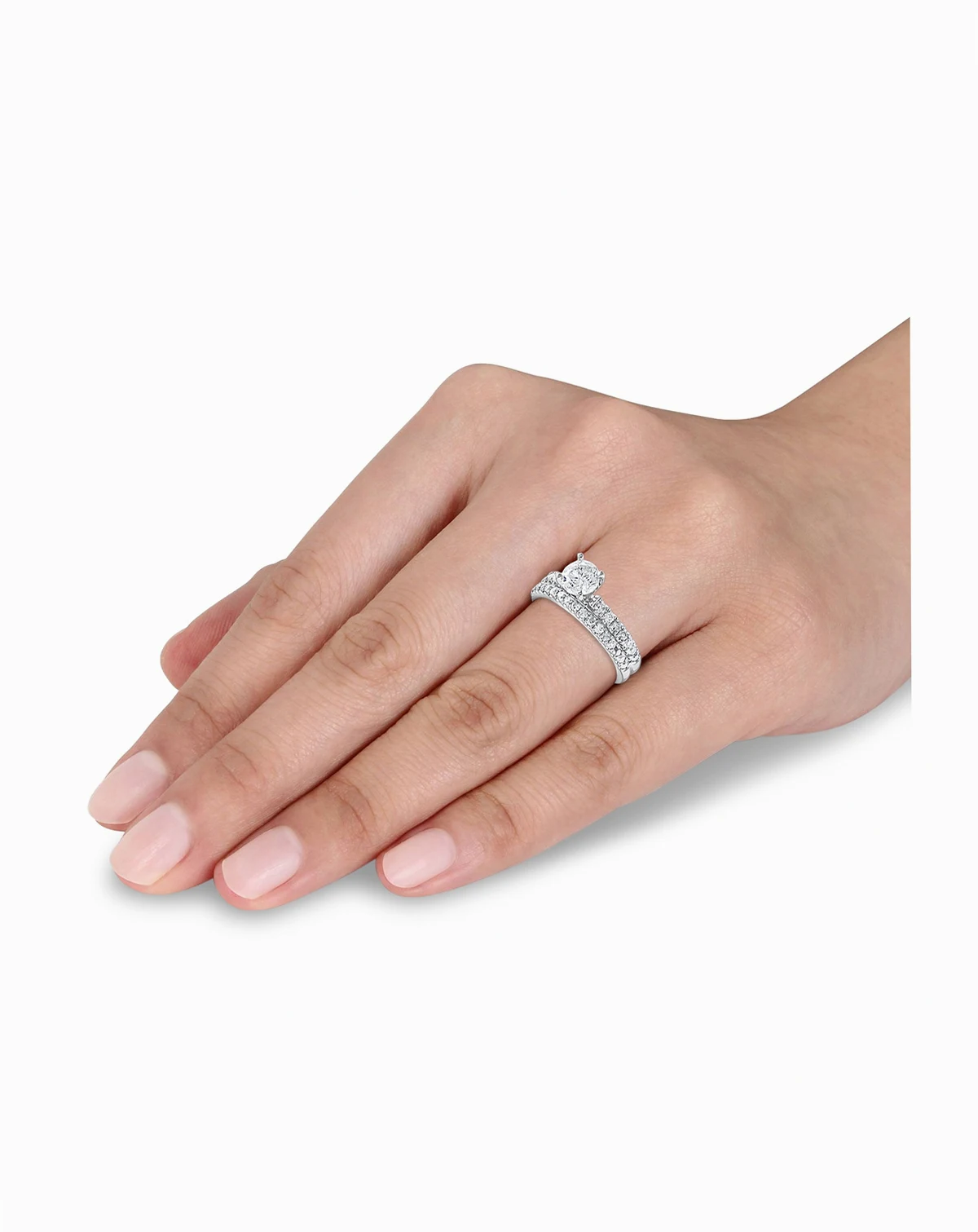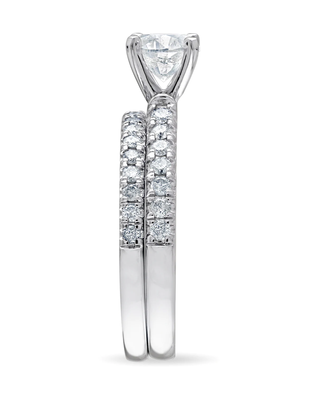 Bring your love to light with the beauty and shine of this diamond bridal set. The gorgeous engagement ring features a stunning round-cut center stone (3/4 ct. t.w.), and additional round-cut accent diamonds add to the brilliance of the set.