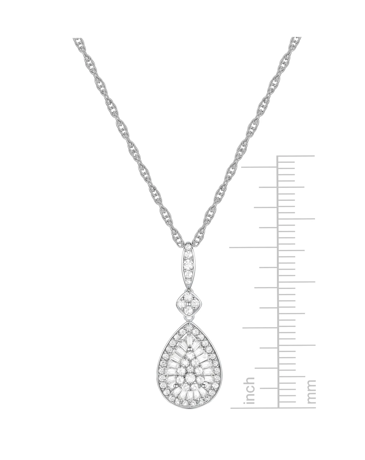 Diamond Round & Baguette Teardrop Cluster 18" Pendant Necklace (1/2 ct. t.w.)