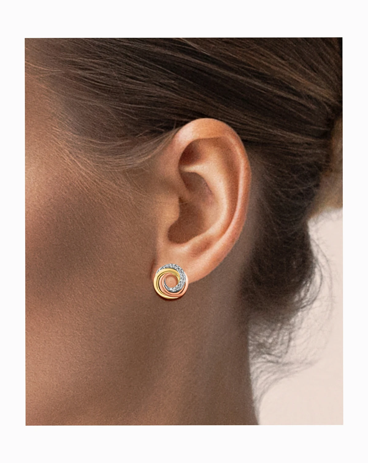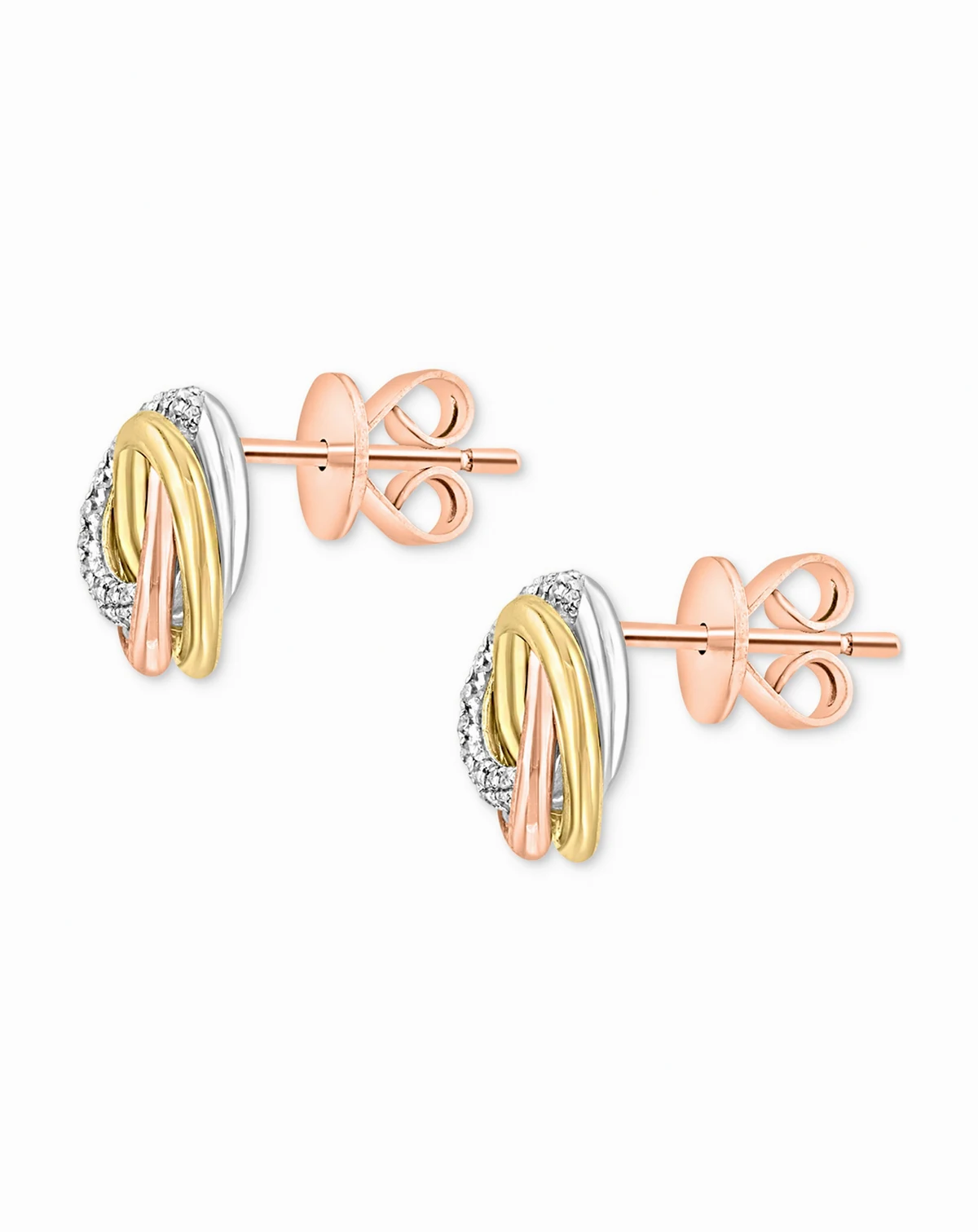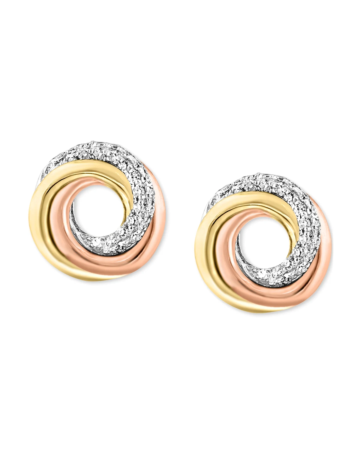 Diamond Swirl Knot Stud Earrings (1/6 ct. t.w.) in 14k Tricolor Gold