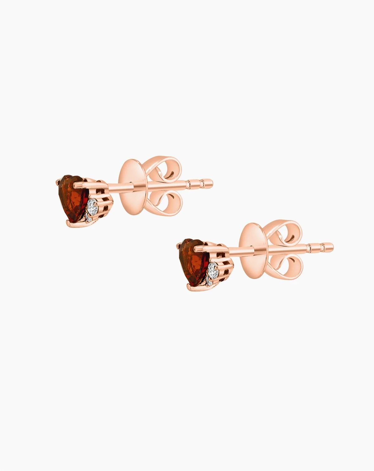 Garnet (3/4 ct. t.w.) & Diamond (1/10 ct. t.w.) Heart Stud Earrings in 14k Rose Gold