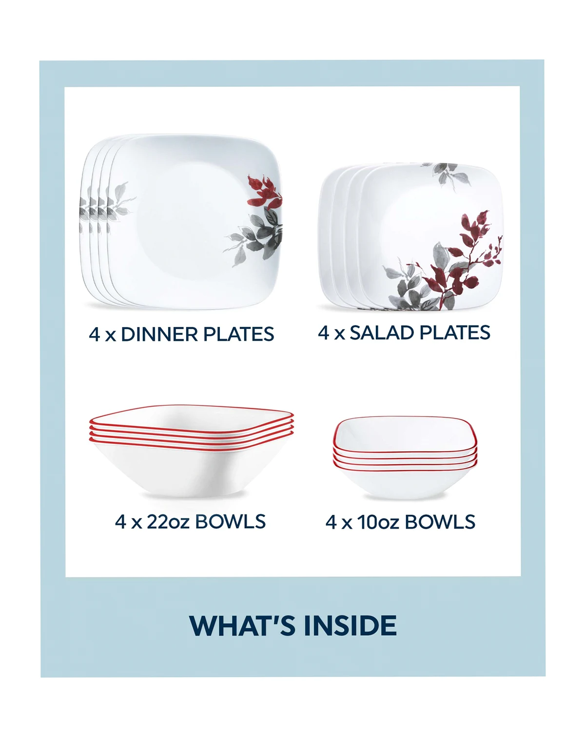 Square Kyoto Leaves 16 Pc. Dinnerware Set, Service for 4