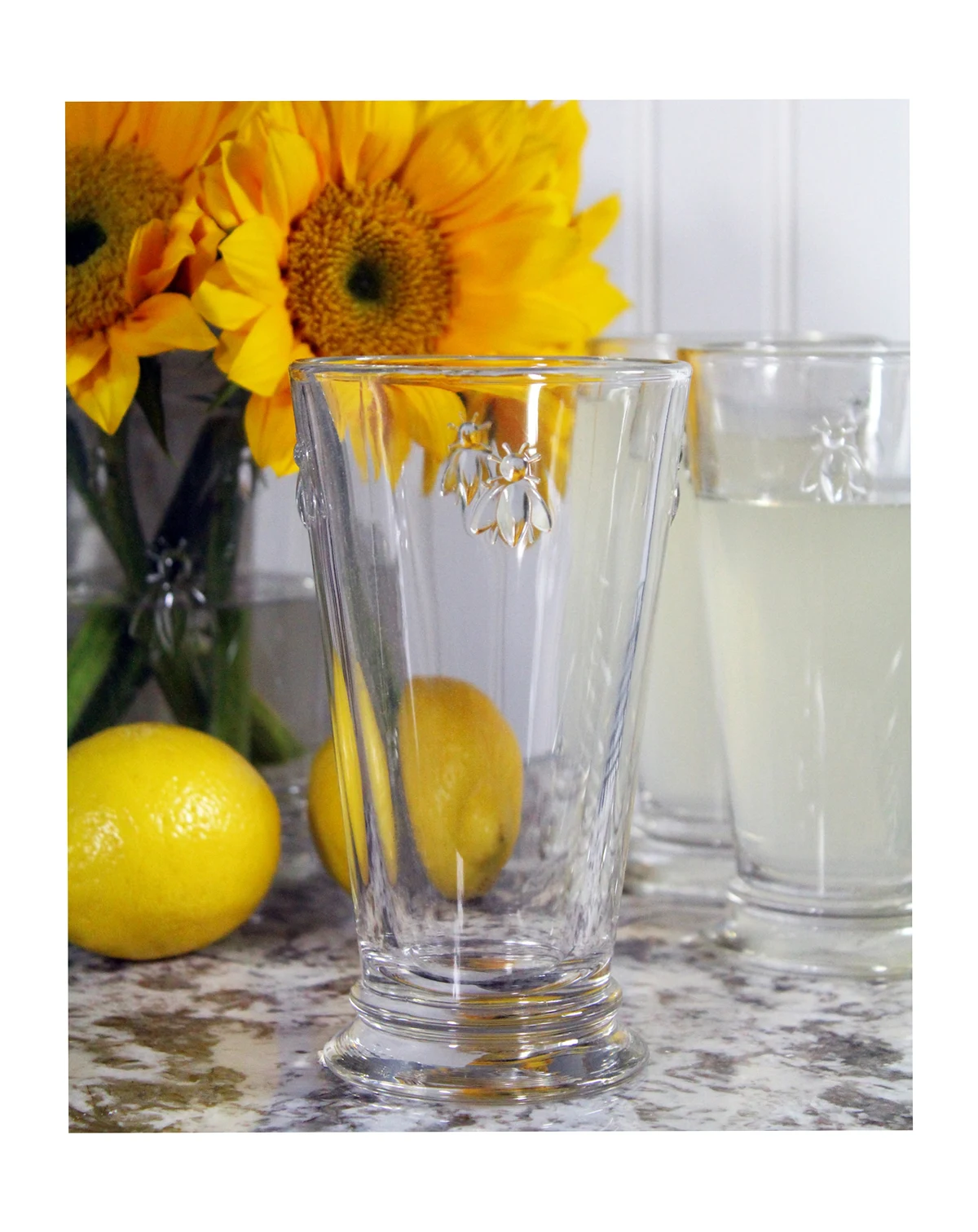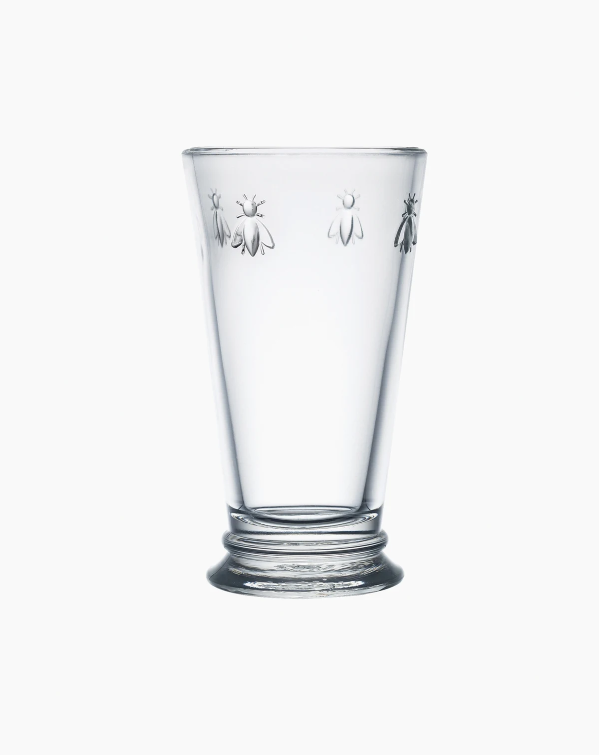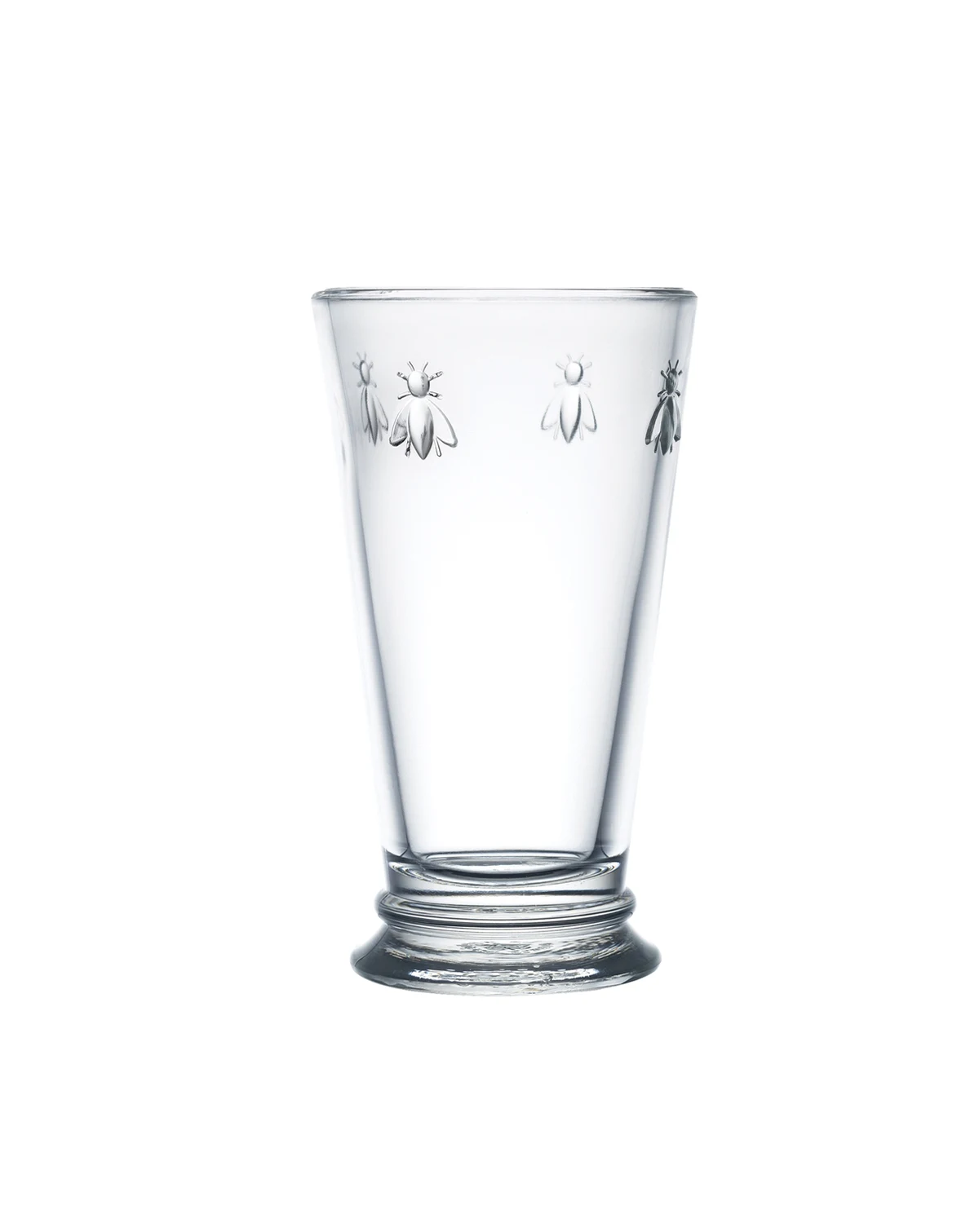 A Napoleon bee motif adds a vintage accent to everyday dining with these highball glasses from French Home's La Rochere Collection.
