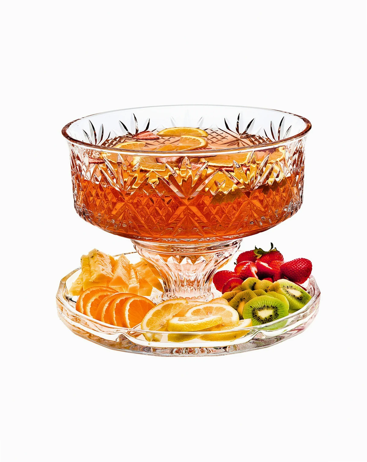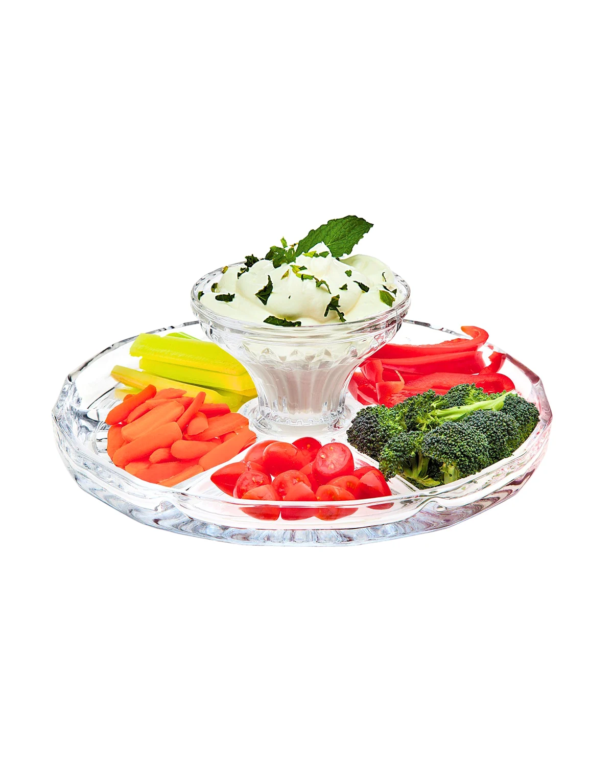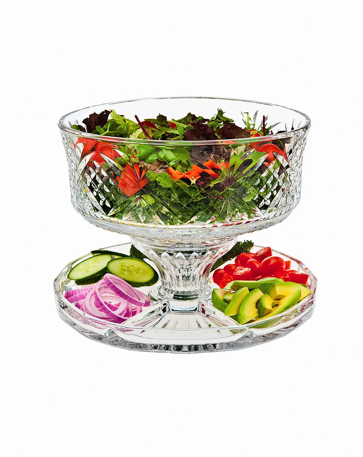 Godinger serveware works magic for the tireless host, offering one stunning cake stand that serves three separate functions. Rearrange the crystal dome, divided dish and hollow stand to suit your needs, whether it's serving cake, salad or chips and dip. The 4 in 1 Dublin Cake Plate transforms itself into a cake plate-covered cake plate punch bowl and relish server providing multi uses from one piece. The 4 in 1 Cake Plate can bring much joy and happiness to the hostess over the course of the night allowing the hostess to serve fruit &vegetables- punch cocktails and end the meal with desserts and pastries or even be creative and using the bowl for ice cream sundaes.