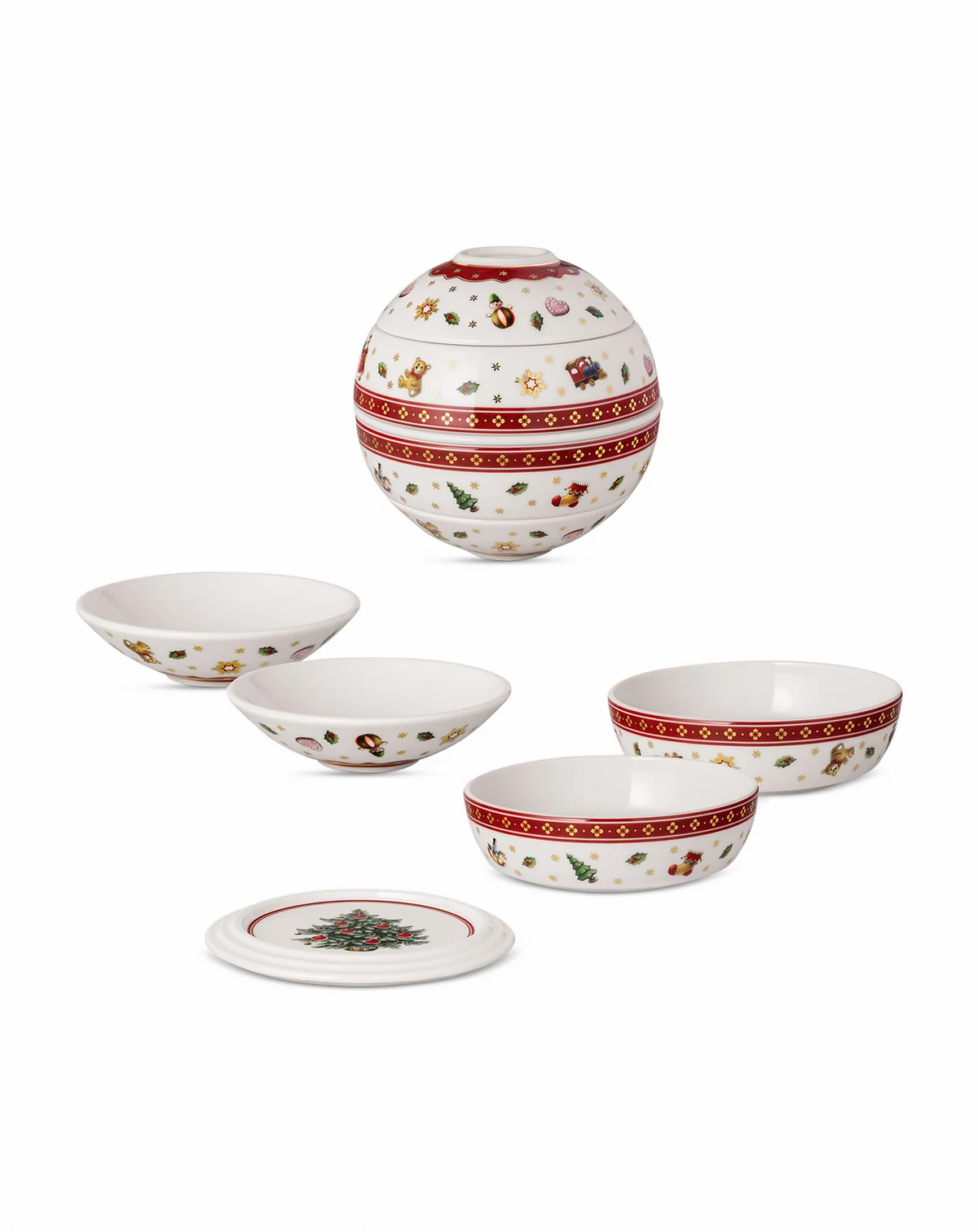 Combining functionality with design, Villeroy & Boch's Toys Delight Petite Boule is a stackable appetizer set, consisting of five pieces (four bowls and an appetizer plate) that are ideal for stylish snacking. The perfect addition to your charcuterie board, the bowls serve up olives, nuts and cheese in style. The set also makes the perfect collector's item or an excellent gift idea.