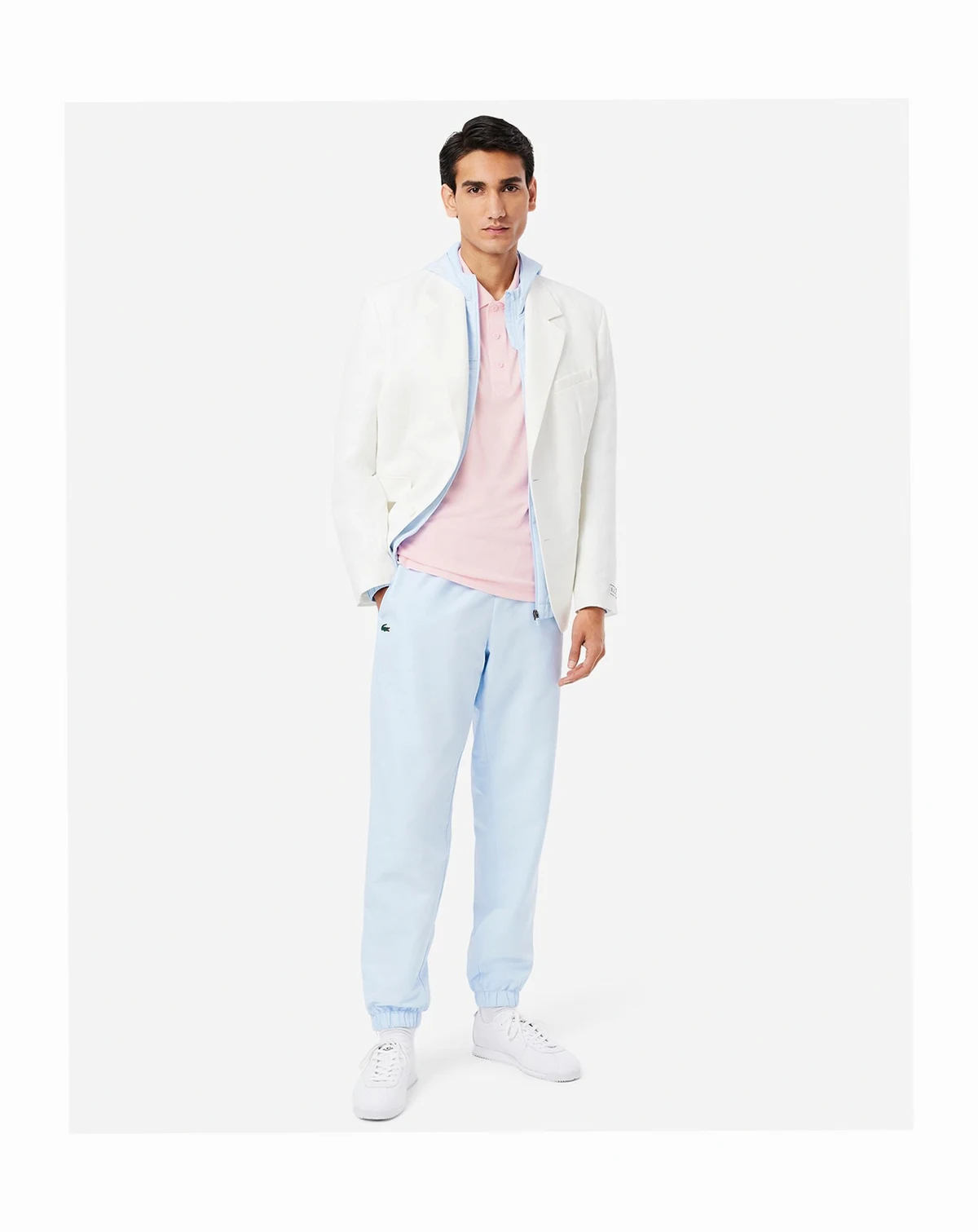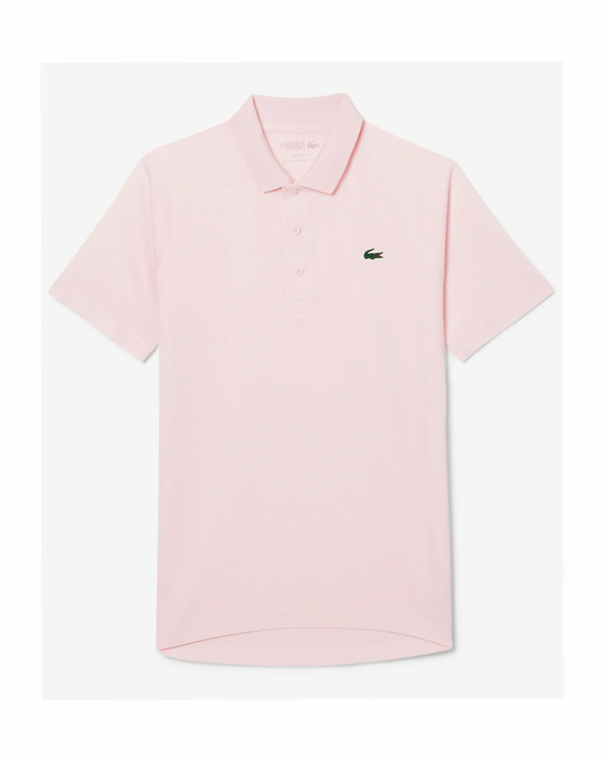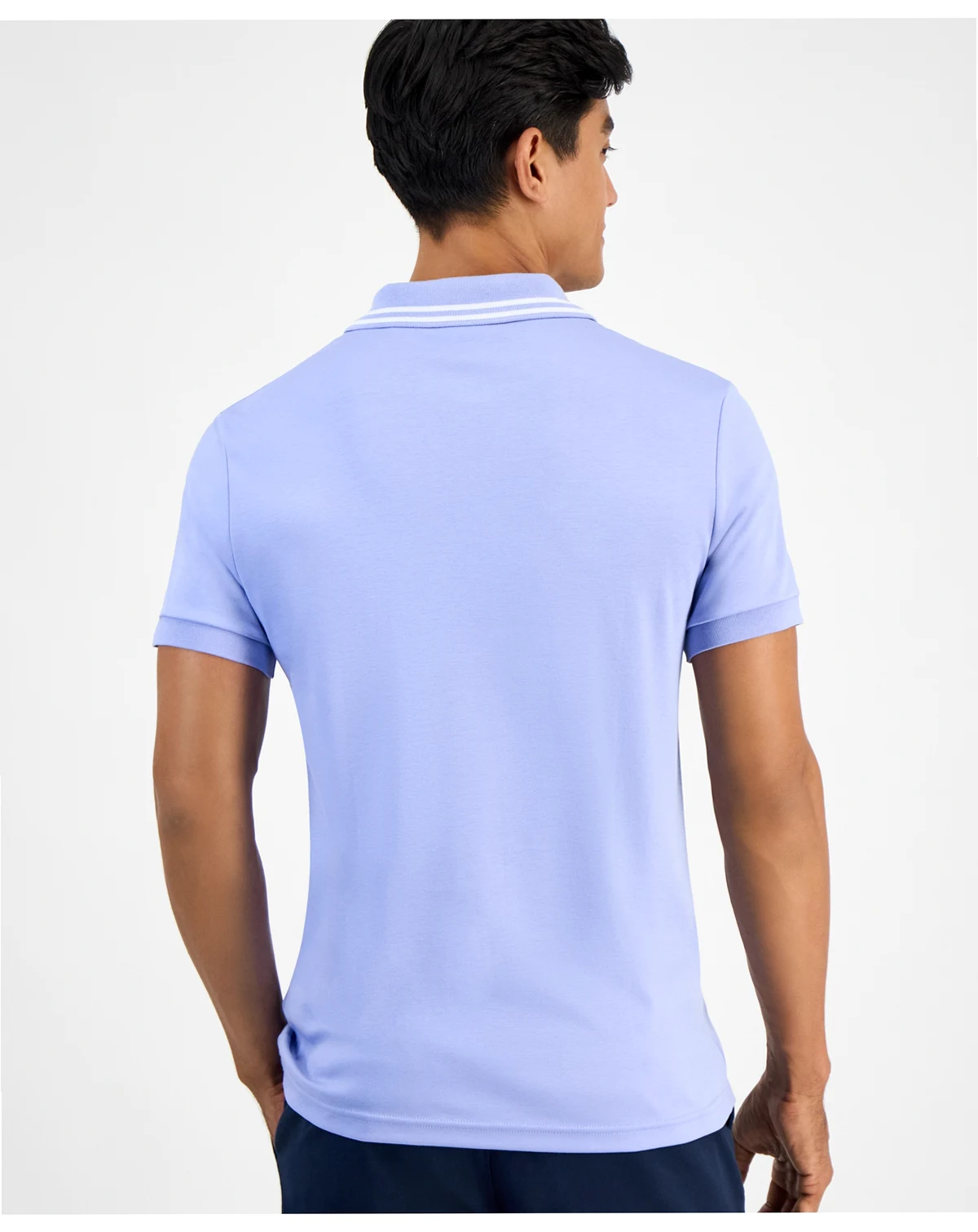 Cotton Pima interlock, Regular, straight cut, Fine contrast stripes on collar, Tonal gum-effect buttons, Embroidered crocodile on chest