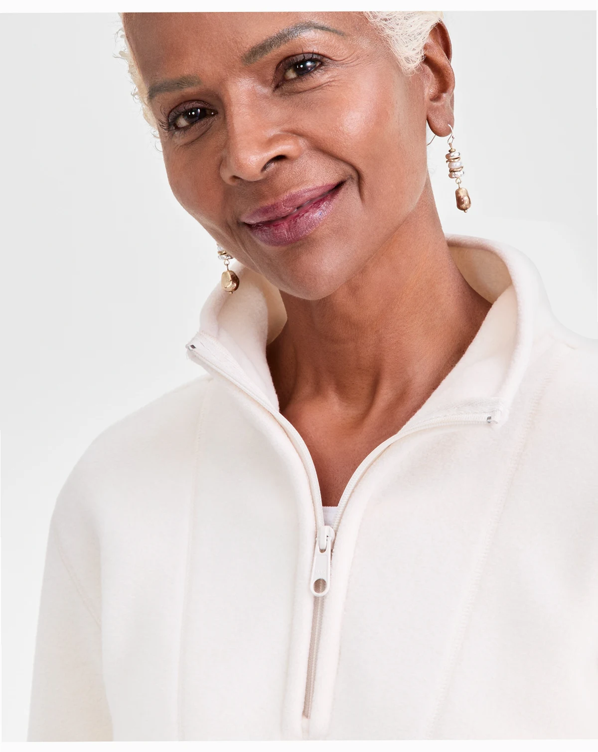 Style & Co® knows how to create comfort and style in one, timeless combination. This quarter zip sweatshirt is finished in a soft and sumptuous fleece for cozy chic.