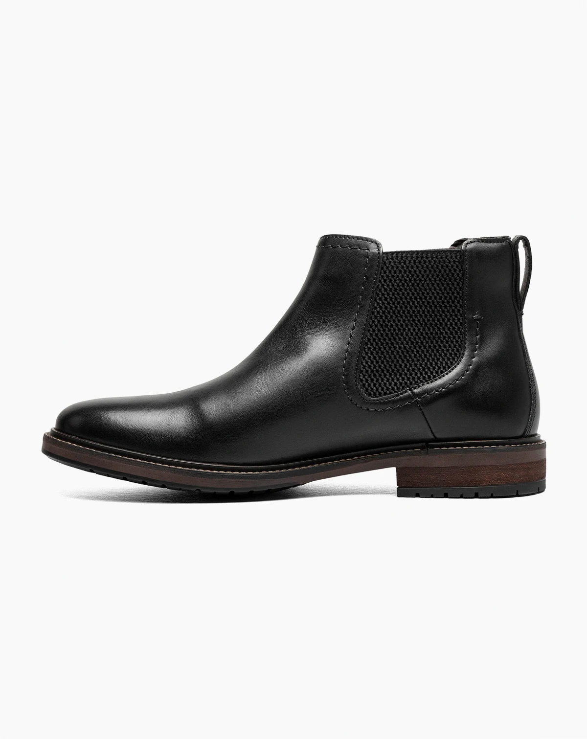 The Florsheim Forge Plain Toe Gore Boot features full leather uppers, a modern tapered toe shape, breathable textile linings, fully cushioned insole and flexible rubber outsole.